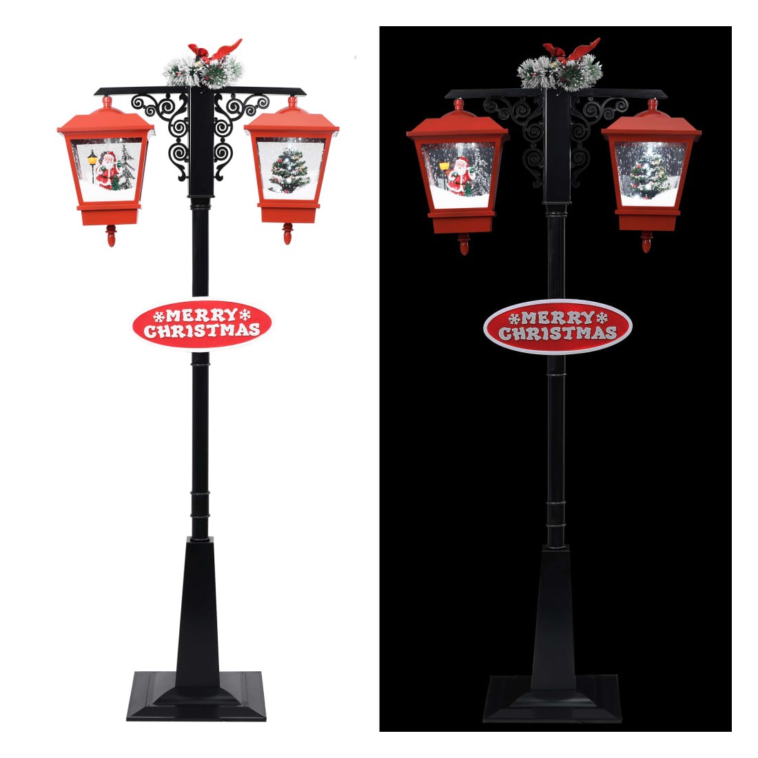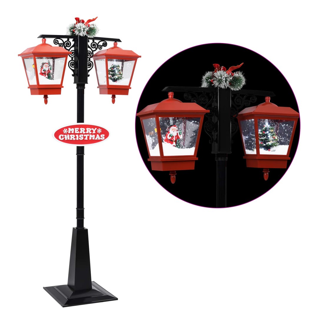 Notre magnifique lampadaire brille tout au long de la journée et scintille pendant la nuit, avec un motif de chute de neige distinctif qui illumine votre fête de Noël. La pompe intégrée transfère la neige de la base et continue de la pulvériser depuis le haut. Il convient également pour décorer les centres commerciaux avec une guirlande festive, un nœud papillon, un Père Noël, la neige qui tombe à l’intérieur de l’abat-jour et le signe MERRY CHRISTMAS sur le poteau, pour faire savoir à tout le monde que les vacances sont ici ! De plus, le lampadaire de Noël, léger et durable, peut être utilisé chaque année, ce qui en fait un choix très économique. La livraison comprend également un adaptateur, des fils et du matériel de montage.