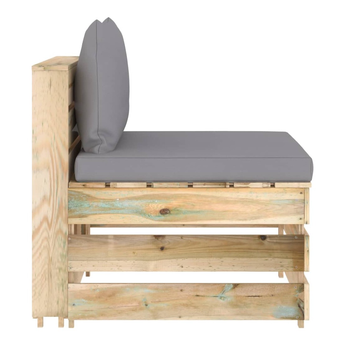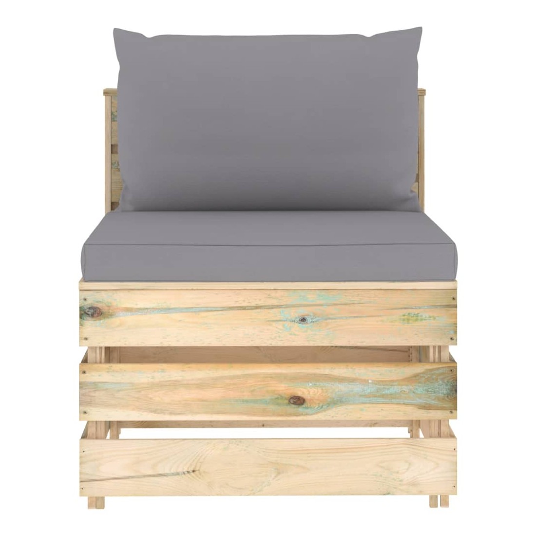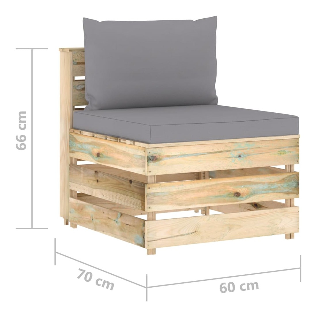 Ce canapé de milieu en bois est un choix idéal pour vous détendre, profiter du beau temps, faire une sieste ou discuter en famille ou entre amis. Avec son design intemporel de palette, ce canapé en bois ajoute une touche de charme rustique à votre terrasse, jardin ou salon. Le siège central est fabriqué en bois de pin imprégné, ce qui le rend durable et résistant aux intempéries. Ce fauteuil central a une construction solide et nécessite peu d’entretien. Ce canapé palette est spécialement conçu pour faire partie d'un ensemble de salon et peut également être utilisé comme un canapé simple. Vous pouvez le combiner avec d’autres segments modulaires comme table basse, repose-pied et canapé d’angle pour créer vos propres configurations de salon de jardin ! Remarque : afin de prolonger la du