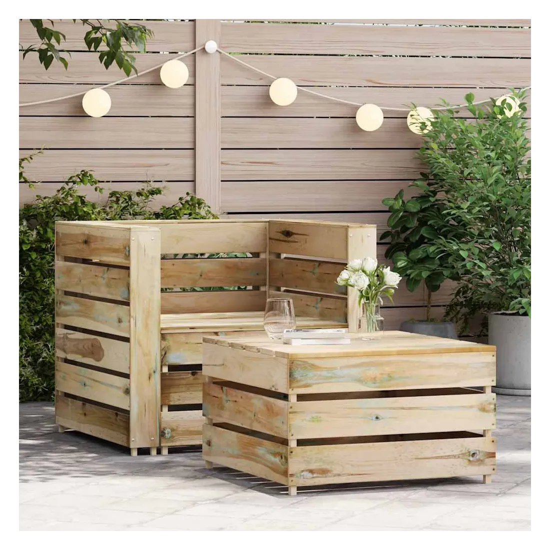 - Matériau : pin, imprégné de vert