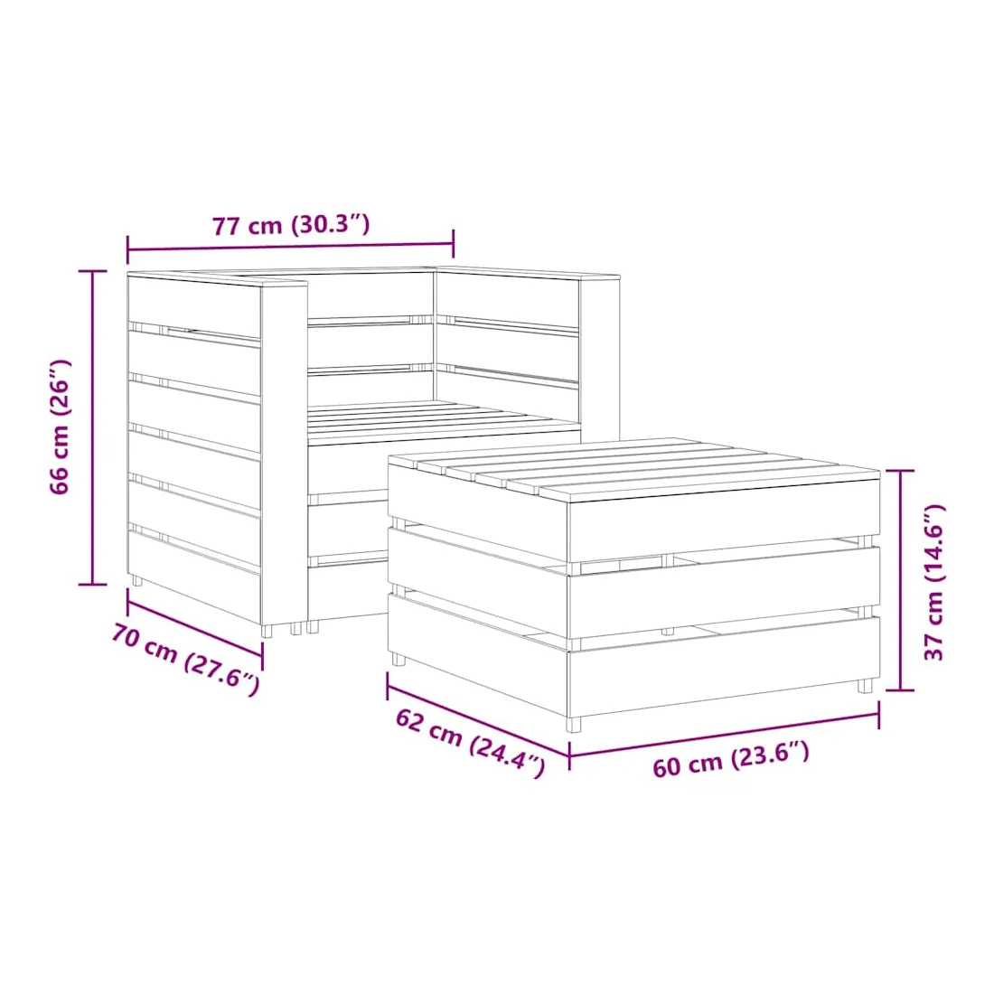 - Dimensions du fauteuil : 77 x 70 x 66 cm (l x P x H)
