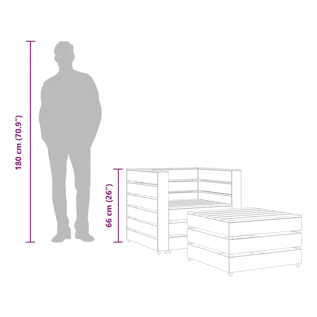 Cet ensemble de salon palette de jardin est un choix excellent pour vous détendre et profiter du bon temps, faire une sieste ou discuter avec votre famille ou vos amis. L'ensemble de salon de jardin est fabriqué en bois de pin imprégné, résistant à la pourriture et très durable, ce qui le rend parfaitement adapté à une utilisation en plein air. Cet ensemble de salon présente une construction solide et nécessite peu d'entretien. Avec un dessus de table robuste, la table est idéale pour garder la nourriture et les boissons à portée de main. De plus, la conception modulaire permet également de placer l'ensemble dans n'importe quel arrangement selon vos goûts. Remarque: Afin de prolonger la durée de vie de vos meubles d'extérieur, nous vous recommandons de les nettoyer régulièrement et de ne pas les laisser à l'extérieur sans protection inutilement.Nettoyage: Utiliser une solution savonneuse douceStockage: Si possible, stockez dans un endroit frais et sec à l'intérieur. Si le produit est stocké à l'extérieur, protégez-le avec une housse imperméable. Essuyez et séchez l'excès d'eau ou de neige des surfaces planes après la pluie ou une chute de neige. Permettez une circulation d'air suffisante afin d'éviter les dommages liés à l'humidité.