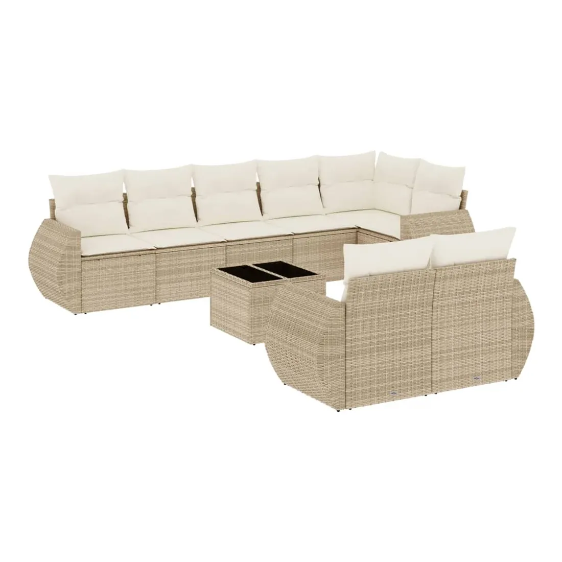 Salon de jardin avec coussins 9 pcs beige résine tressée