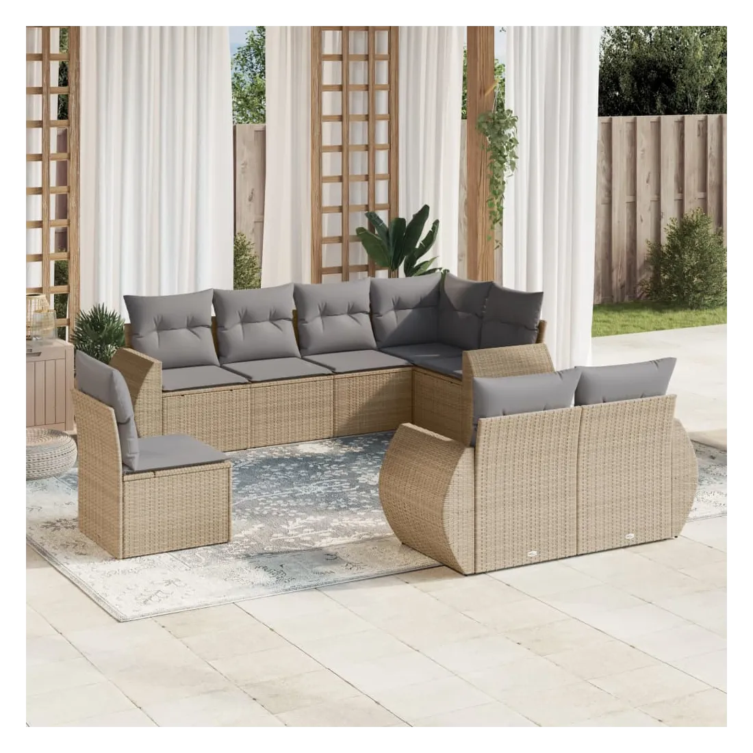 Cet ensemble de canapés de jardin est le complément parfait de votre arrière-cour, terrasse ou patio, offrant un espace confortable et accueillant pour discuter avec la famille et les amis ou simplement se détendre et profiter de l'extérieur. Matériau durable : la résine tressée, également connue sous le nom de poly rotin, est un matériau synthétique solide et nécessitant peu d'entretien qui ressemble au rotin naturel. Il est léger, facile à nettoyer et couramment utilisé pour les meubles d'extérieur en raison de sa durabilité et de ses propriétés de résistance aux intempéries.Expérience d'assise confortable : ce mobilier d'extérieur, doté de coussins épais, offre une expérience d'assise confortable.Housse amovible et lavable : ces coussins de siège sont dotés de housses amovibles pour un lavage et un entretien faciles.Conception modulaire : cet ensemble de meubles d'extérieur a une conception modulaire, ce qui le rend complètement flexible et facile à déplacer, afin que vous puissiez créer un agencement de meubles d'extérieur personnalisé. Bon à savoir :Pour que vos meubles d'extérieur restent beaux, nous vous recommandons de les protéger avec une housse imperméable.