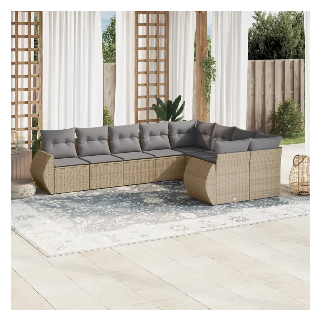 Salon de jardin avec coussins 9 pcs beige résine tressée