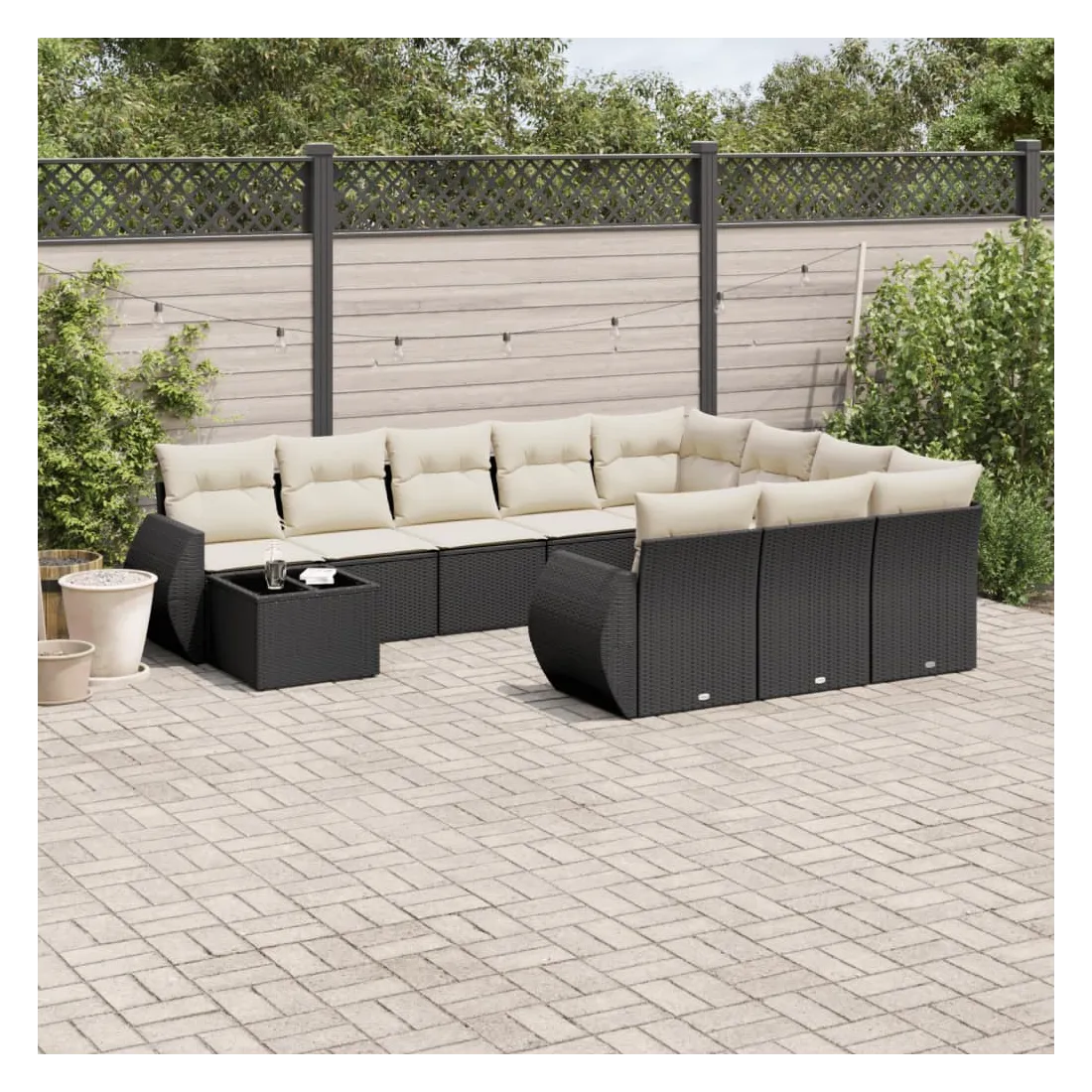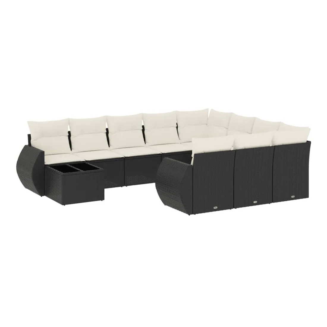 Salon de jardin 11 pcs avec coussins noir résine tressée