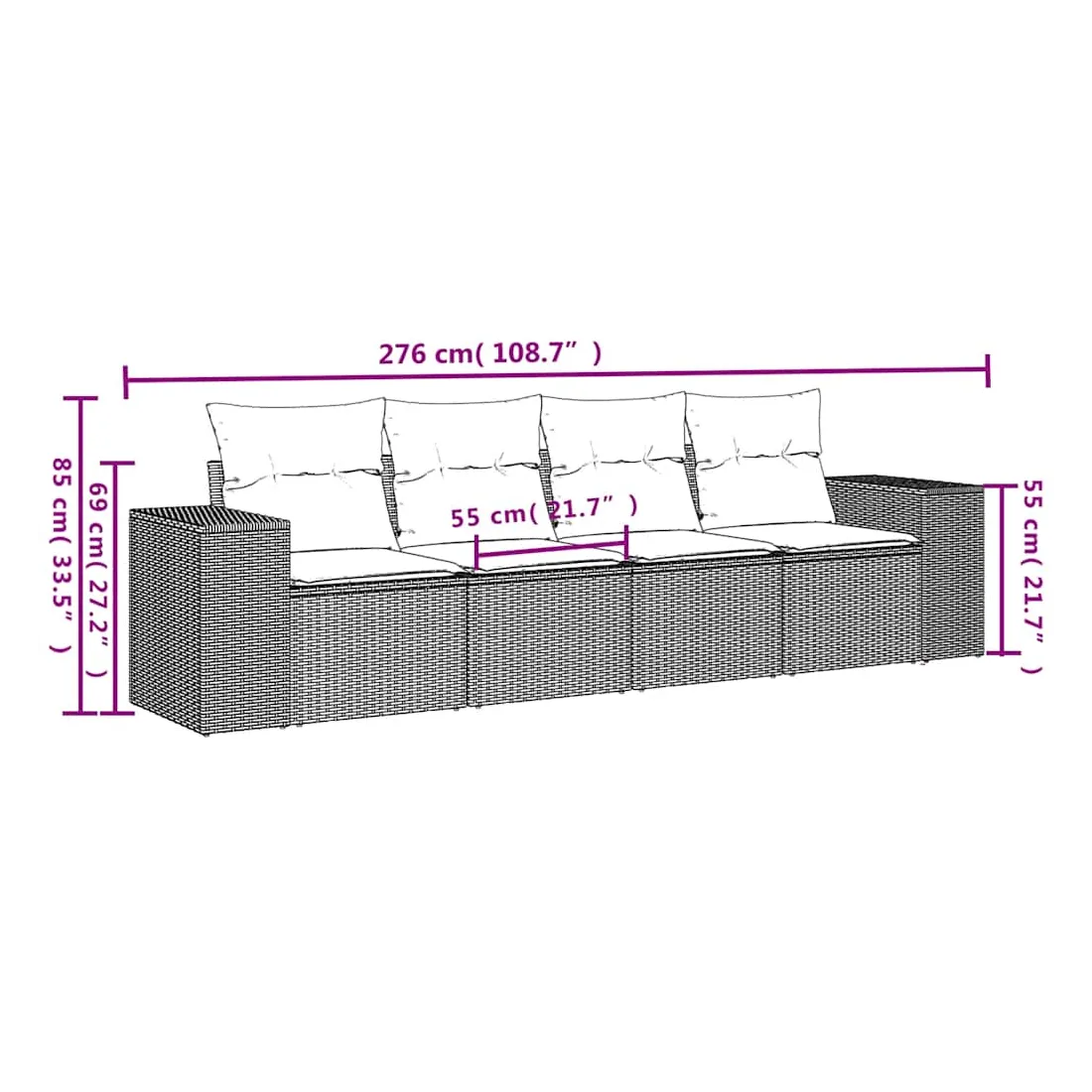 Cet ensemble de canapés de jardin est le complément parfait de votre arrière-cour, terrasse ou patio, offrant un espace confortable et accueillant pour discuter avec la famille et les amis ou simplement se détendre et profiter de l'extérieur. Matériau durable : la résine tressée, également connue sous le nom de poly rotin, est un matériau synthétique solide et nécessitant peu d'entretien qui ressemble au rotin naturel. Il est léger, facile à nettoyer et couramment utilisé pour les meubles d'extérieur en raison de sa durabilité et de ses propriétés de résistance aux intempéries.Expérience d'assise confortable : ce mobilier d'extérieur, doté de coussins épais, offre une expérience d'assise confortable.Housse amovible et lavable : ces coussins de siège sont dotés de housses amovibles pour un lavage et un entretien faciles.Conception modulaire : cet ensemble de meubles d'extérieur a une conception modulaire, ce qui le rend complètement flexible et facile à déplacer, afin que vous puissiez créer un agencement de meubles d'extérieur personnalisé. Bon à savoir :Pour que vos meubles d'extérieur restent beaux, nous vous recommandons de les protéger avec une housse imperméable.