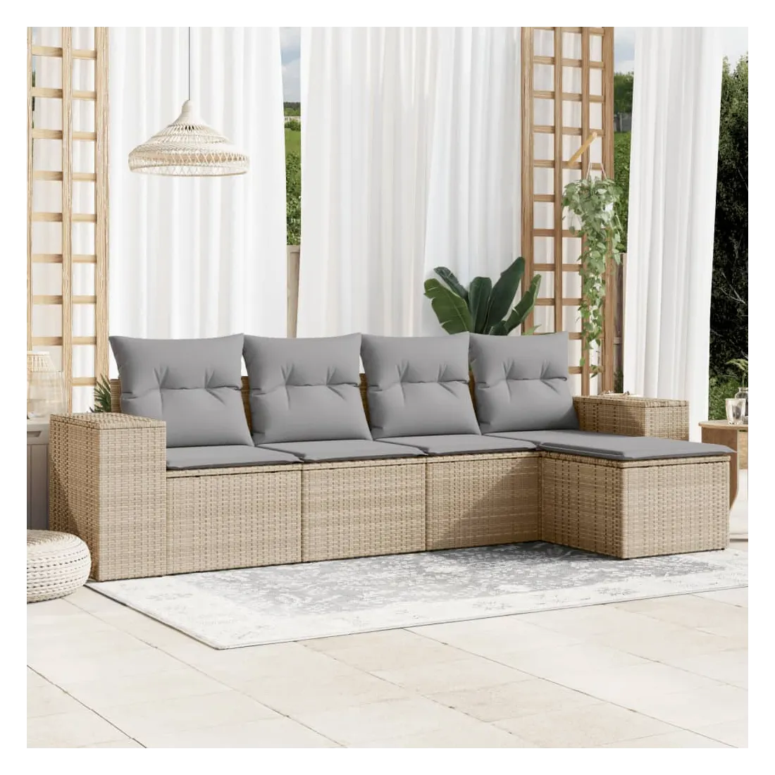 Cet ensemble de canapés de jardin est le complément parfait de votre arrière-cour, terrasse ou patio, offrant un espace confortable et accueillant pour discuter avec la famille et les amis ou simplement se détendre et profiter de l'extérieur. Matériau durable : la résine tressée, également connue sous le nom de poly rotin, est un matériau synthétique solide et nécessitant peu d'entretien qui ressemble au rotin naturel. Il est léger, facile à nettoyer et couramment utilisé pour les meubles d'extérieur en raison de sa durabilité et de ses propriétés de résistance aux intempéries.Expérience d'assise confortable : ce mobilier d'extérieur, doté de coussins épais, offre une expérience d'assise confortable.Housse amovible et lavable : ces coussins de siège sont dotés de housses amovibles pour un lavage et un entretien faciles.Conception modulaire : cet ensemble de meubles d'extérieur a une conception modulaire, ce qui le rend complètement flexible et facile à déplacer, afin que vous puissiez créer un agencement de meubles d'extérieur personnalisé. Bon à savoir :Pour que vos meubles d'extérieur restent beaux, nous vous recommandons de les protéger avec une housse imperméable.