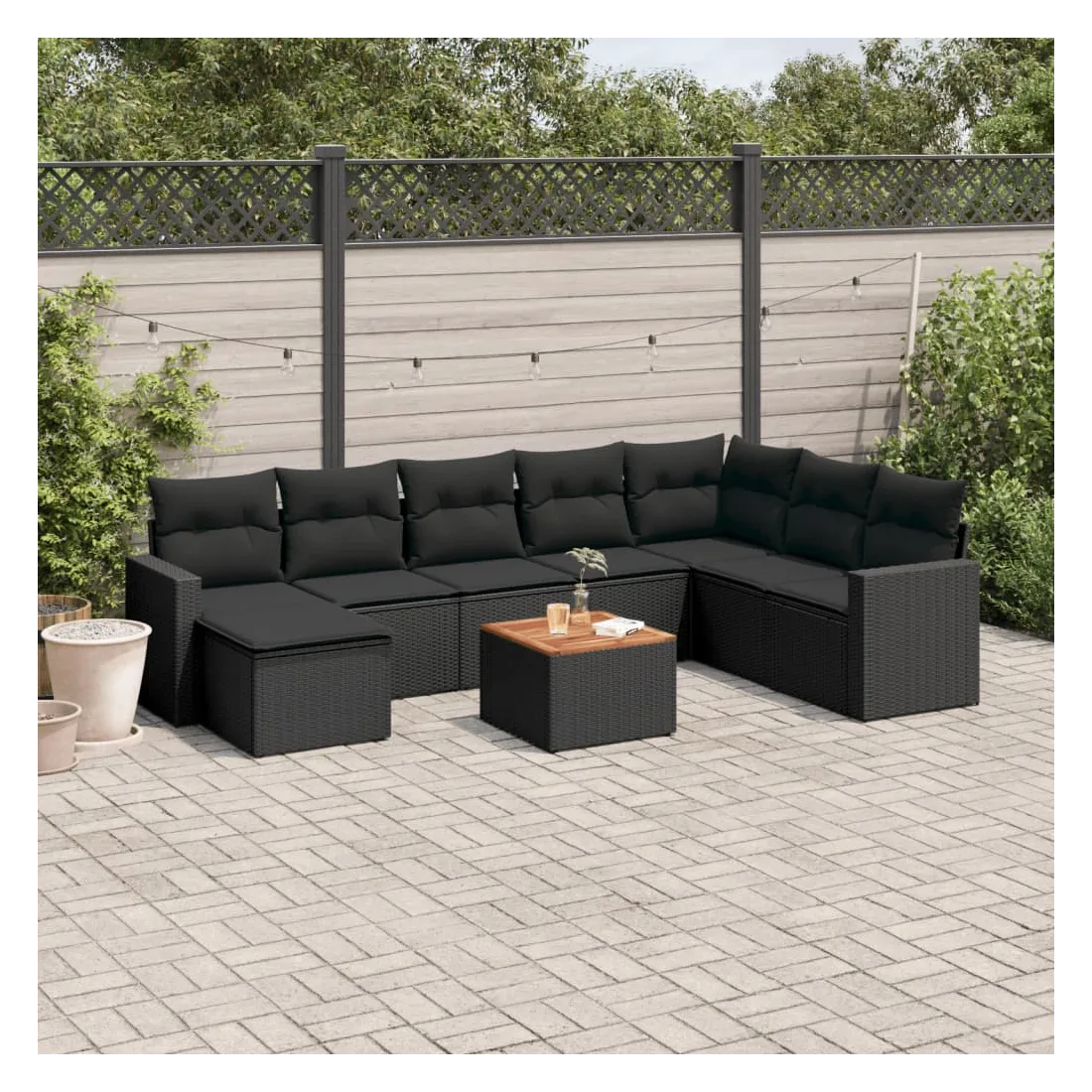 Cet ensemble de canapés de jardin est le complément parfait de votre arrière-cour, terrasse ou patio, offrant un espace confortable et accueillant pour discuter avec la famille et les amis ou simplement se détendre et profiter de l'extérieur. Matériau durable : la résine tressée, également connue sous le nom de poly rotin, est un matériau synthétique solide et nécessitant peu d'entretien qui ressemble au rotin naturel. Il est léger, facile à nettoyer et couramment utilisé pour les meubles d'extérieur en raison de sa durabilité et de ses propriétés de résistance aux intempéries.Dessus stable et facile à nettoyer : cette table de jardin a un dessus en bois d'acacia robuste, durable et facile à nettoyer avec un chiffon humide.Expérience d'assise confortable : ce mobilier d'extérieur, doté de coussins épais, offre une expérience d'assise confortable.Housse amovible et lavable : ces coussins de siège sont dotés de housses amovibles pour un lavage et un entretien faciles.Conception modulaire : cet ensemble de meubles d'extérieur a une conception modulaire, ce qui le rend complètement flexible et facile à déplacer, afin que vous puissiez créer un agencement de meubles d'extérieur personnalisé. Bon à savoir :Pour que vos meubles d'extérieur restent beaux, nous vous recommandons de les protéger avec une housse imperméable.