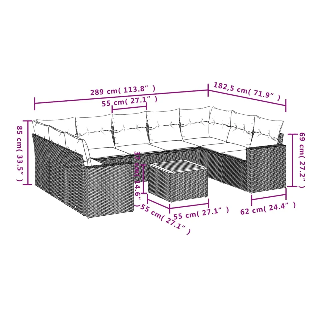 - 9 x coussin d'assise avec housse amovible et lavable