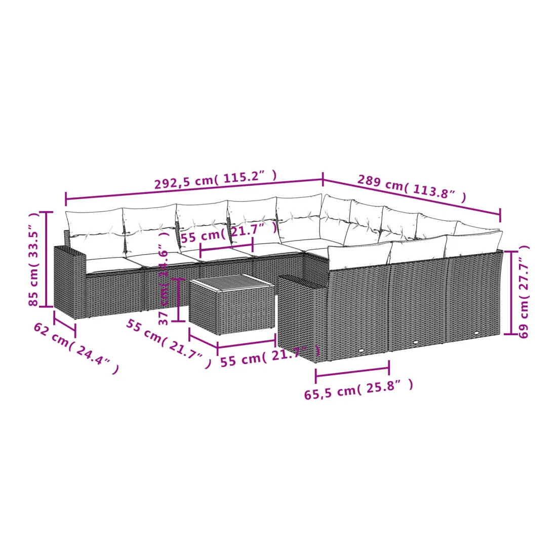 - Dimensions du coussin de dossier : 55 x 45 x 13 cm (L x l x é)