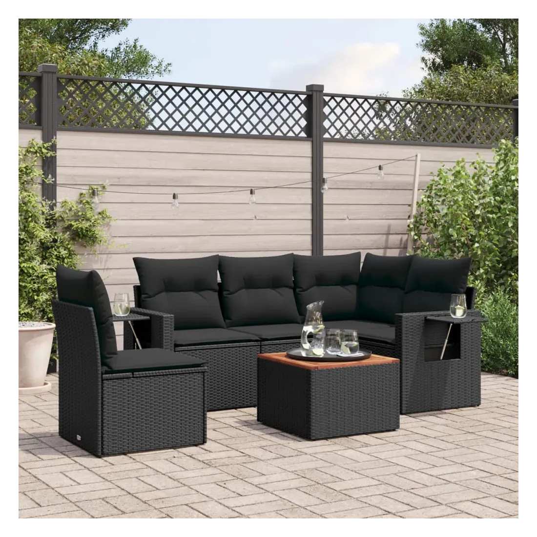 Cet ensemble de canapés de jardin est le complément parfait de votre arrière-cour, terrasse ou patio, offrant un espace confortable et accueillant pour discuter avec la famille et les amis ou simplement se détendre et profiter de l'extérieur. Matériau durable : la résine tressée, également connue sous le nom de poly rotin, est un matériau synthétique solide et nécessitant peu d'entretien qui ressemble au rotin naturel. Il est léger, facile à nettoyer et couramment utilisé pour les meubles d'extérieur en raison de sa durabilité et de ses propriétés de résistance aux intempéries.Table d'appoint pratique : ce mobilier d'extérieur comprend une table d'appoint pliable avec un ressort à gaz sur les accoudoirs, offrant un endroit pratique pour garder vos essentiels à portée de main.Dessus stable et facile à nettoyer : cette table de jardin a un dessus en bois d'acacia robuste, durable et facile à nettoyer avec un chiffon humide.Housse amovible et lavable : ces coussins de siège sont dotés de housses amovibles pour un lavage et un entretien faciles.Conception modulaire : cet ensemble de meubles d'extérieur a une conception modulaire, ce qui le rend complètement flexible et facile à déplacer, afin que vous puissiez créer un agencement de meubles d'extérieur personnalisé. Bon à savoir :Pour que vos meubles d'extérieur restent beaux, nous vous recommandons de les protéger avec une housse imperméable.