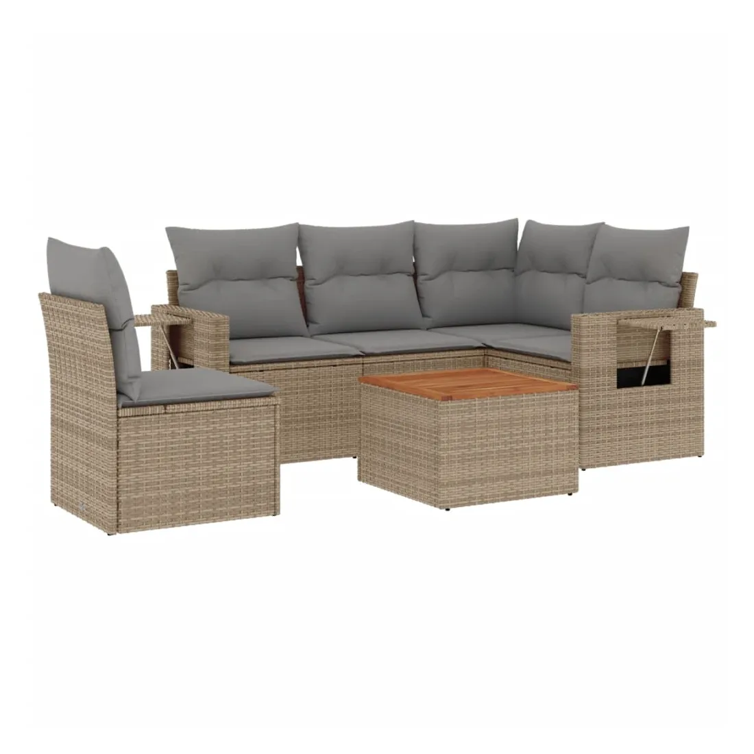 Cet ensemble de canapés de jardin est le complément parfait de votre arrière-cour, terrasse ou patio, offrant un espace confortable et accueillant pour discuter avec la famille et les amis ou simplement se détendre et profiter de l'extérieur. Matériau durable : la résine tressée, également connue sous le nom de poly rotin, est un matériau synthétique solide et nécessitant peu d'entretien qui ressemble au rotin naturel. Il est léger, facile à nettoyer et couramment utilisé pour les meubles d'extérieur en raison de sa durabilité et de ses propriétés de résistance aux intempéries.Table d'appoint pratique : ce mobilier d'extérieur comprend une table d'appoint pliable avec un ressort à gaz sur les accoudoirs, offrant un endroit pratique pour garder vos essentiels à portée de main.Dessus stable et facile à nettoyer : cette table de jardin a un dessus en bois d'acacia robuste, durable et facile à nettoyer avec un chiffon humide.Housse amovible et lavable : ces coussins de siège sont dotés de housses amovibles pour un lavage et un entretien faciles.Conception modulaire : cet ensemble de meubles d'extérieur a une conception modulaire, ce qui le rend complètement flexible et facile à déplacer, afin que vous puissiez créer un agencement de meubles d'extérieur personnalisé. Bon à savoir :Pour que vos meubles d'extérieur restent beaux, nous vous recommandons de les protéger avec une housse imperméable.