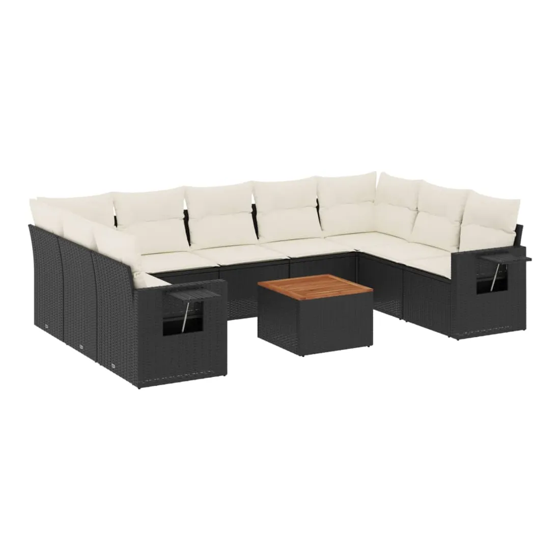 Salon de jardin 10 pcs avec coussins noir résine tressée