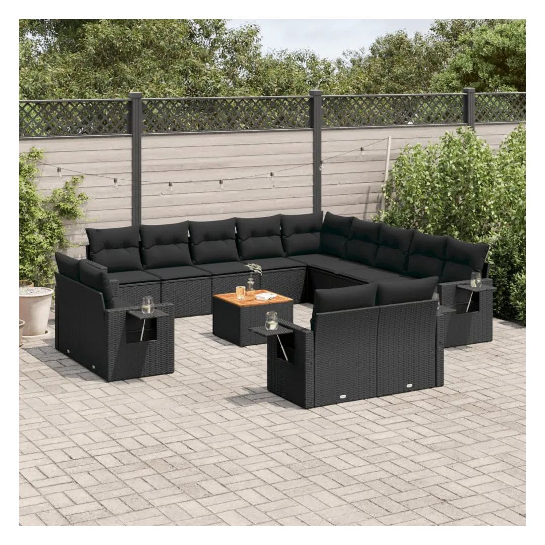 Cet ensemble de canapés de jardin est le complément parfait de votre arrière-cour, terrasse ou patio, offrant un espace confortable et accueillant pour discuter avec la famille et les amis ou simplement se détendre et profiter de l'extérieur. Matériau durable : la résine tressée, également connue sous le nom de poly rotin, est un matériau synthétique solide et nécessitant peu d'entretien qui ressemble au rotin naturel. Il est léger, facile à nettoyer et couramment utilisé pour les meubles d'extérieur en raison de sa durabilité et de ses propriétés de résistance aux intempéries.Table d'appoint pratique : ce mobilier d'extérieur comprend une table d'appoint pliable avec un ressort à gaz sur les accoudoirs, offrant un endroit pratique pour garder vos essentiels à portée de main.Dessus stable et facile à nettoyer : cette table de jardin a un dessus en bois d'acacia robuste, durable et facile à nettoyer avec un chiffon humide.Housse amovible et lavable : ces coussins de siège sont dotés de housses amovibles pour un lavage et un entretien faciles.Conception modulaire : cet ensemble de meubles d'extérieur a une conception modulaire, ce qui le rend complètement flexible et facile à déplacer, afin que vous puissiez créer un agencement de meubles d'extérieur personnalisé. Bon à savoir :Pour que vos meubles d'extérieur restent beaux, nous vous recommandons de les protéger avec une housse imperméable.