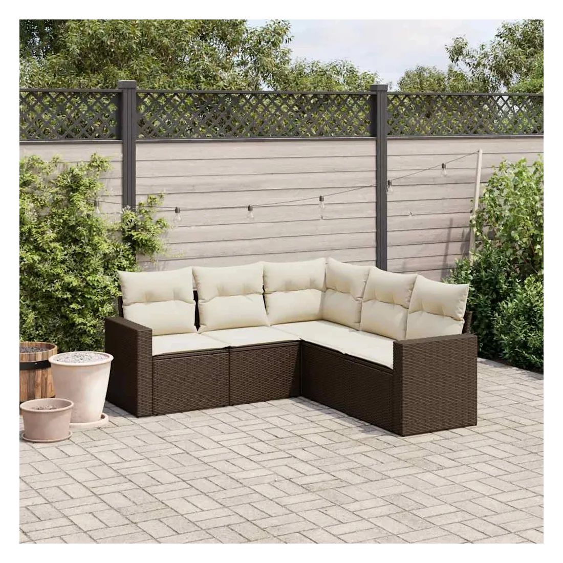 Salon de jardin avec coussins 5 pcs marron résine tressée