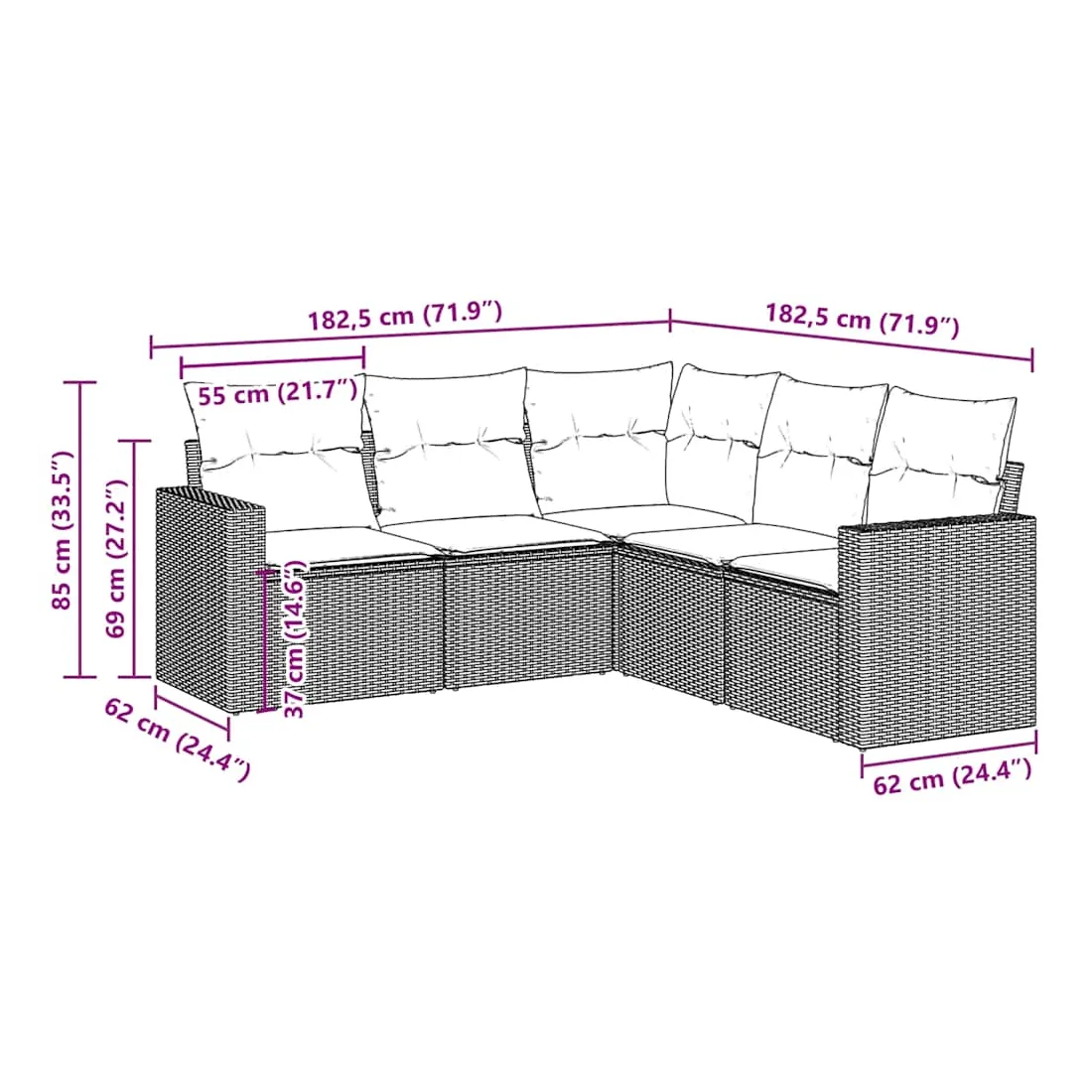 Cet ensemble de canapés de jardin est le complément parfait de votre arrière-cour, terrasse ou patio, offrant un espace confortable et accueillant pour discuter avec la famille et les amis ou simplement se détendre et profiter de l'extérieur. Matériau durable : la résine tressée, également connue sous le nom de poly rotin, est un matériau synthétique solide et nécessitant peu d'entretien qui ressemble au rotin naturel. Il est léger, facile à nettoyer et couramment utilisé pour les meubles d'extérieur en raison de sa durabilité et de ses propriétés de résistance aux intempéries.Fonction de rangement avec sac résistant à l'eau : chaque siège de jardin dispose d'un espace de rangement sous l'assise, complété par un sac résistant à l'eau pour ranger les coussins, les jouets et d'autres objets. Les sacs intérieurs sont dotés d'un couvercle et peuvent être solidement fixés aux sièges à l'aide de bandes auto-agrippantes pour plus de stabilité.Expérience d'assise confortable : ce mobilier d'extérieur, doté de coussins épais, offre une expérience d'assise confortable.Housse amovible et lavable : ces coussins de siège sont dotés de housses amovibles pour un lavage et un entretien faciles.Conception modulaire : cet ensemble de meubles d'extérieur a une conception modulaire, ce qui le rend complètement flexible et facile à déplacer, afin que vous puissiez créer un agencement de meubles d'extérieur personnalisé. Bon à savoir :Pour que vos meubles d'extérieur restent beaux, nous vous recommandons de les protéger avec une housse imperméable.