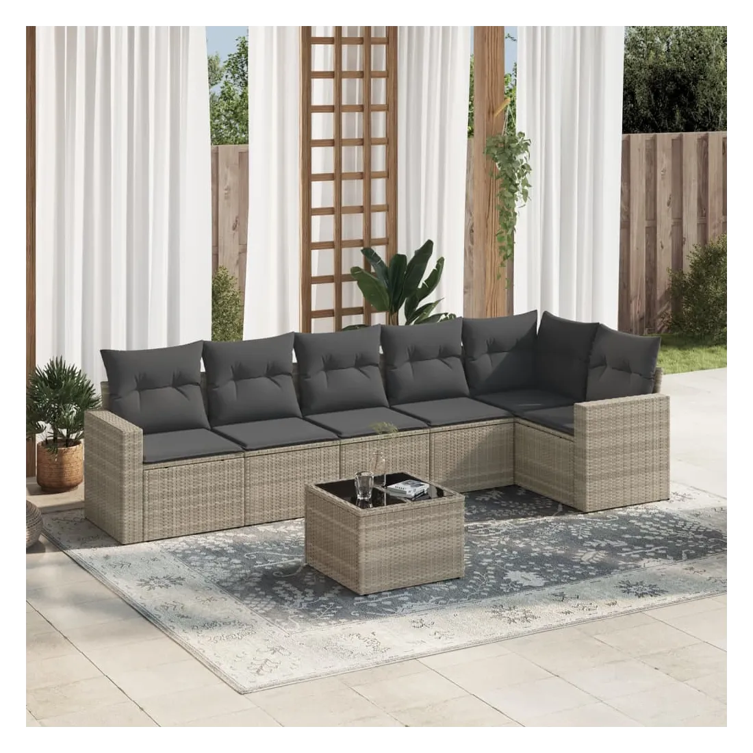 Salon de jardin avec coussins 7 pcs gris clair résine tressée