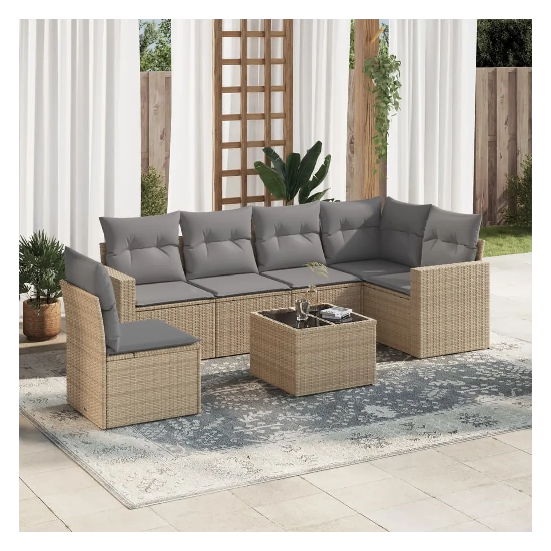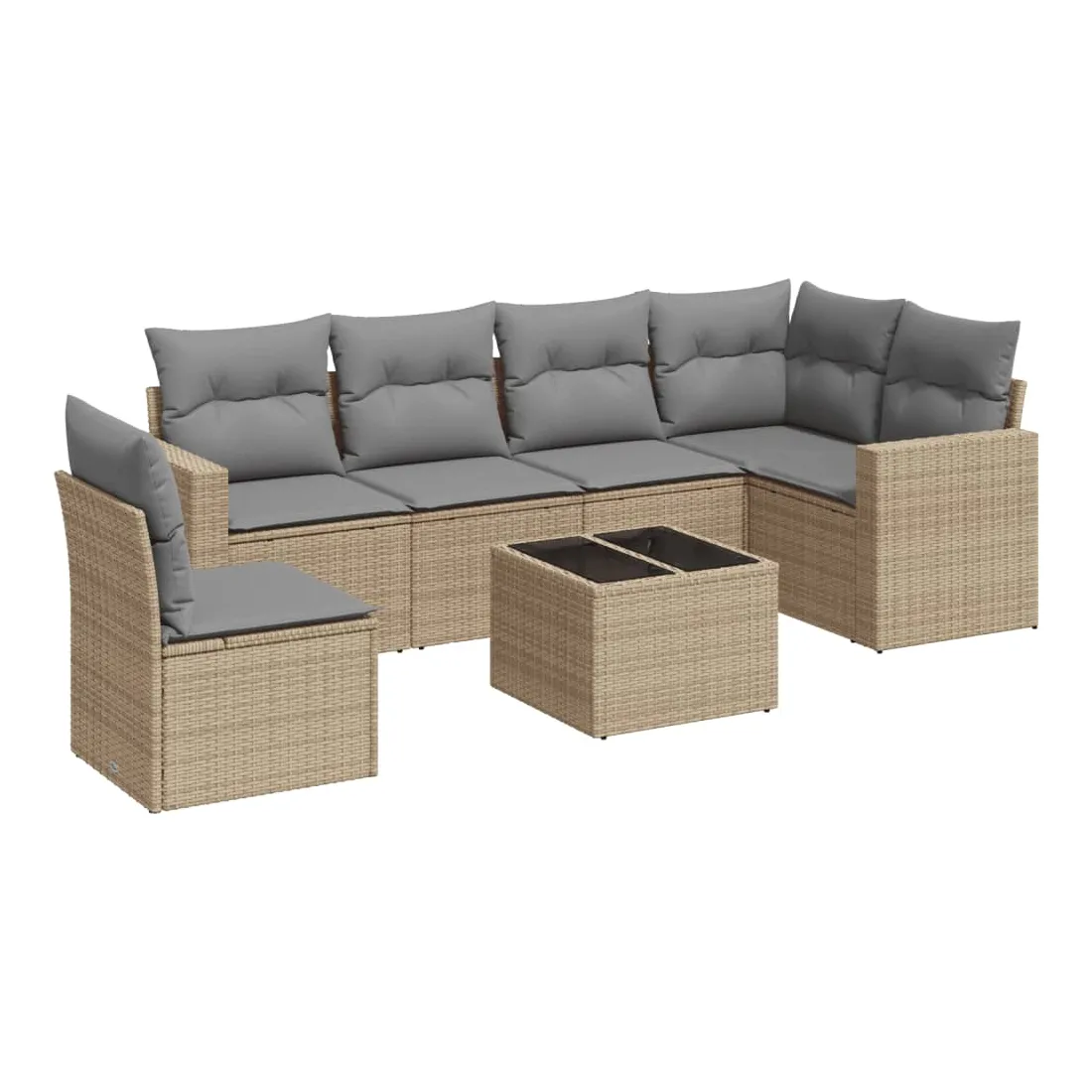 Salon de jardin avec coussins 7 pcs beige résine tressée