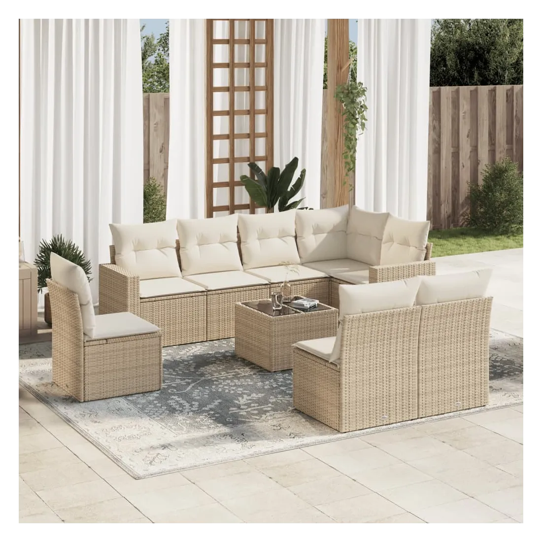 Cet ensemble de canapés de jardin est le complément parfait de votre arrière-cour, terrasse ou patio, offrant un espace confortable et accueillant pour discuter avec la famille et les amis ou simplement se détendre et profiter de l'extérieur. Matériau durable : la résine tressée, également connue sous le nom de poly rotin, est un matériau synthétique solide et nécessitant peu d'entretien qui ressemble au rotin naturel. Il est léger, facile à nettoyer et couramment utilisé pour les meubles d'extérieur en raison de sa durabilité et de ses propriétés de résistance aux intempéries.Fonction de rangement avec sac résistant à l'eau : chaque siège de jardin dispose d'un espace de rangement sous l'assise, complété par un sac résistant à l'eau pour ranger les coussins, les jouets et d'autres objets. Les sacs intérieurs sont dotés d'un couvercle et peuvent être solidement fixés aux sièges à l'aide de bandes auto-agrippantes pour plus de stabilité.Dessus en verre : le dessus de la table d'extérieur est fabriqué en verre trempé solide et durable, ce qui le rend facile à nettoyer avec un chiffon humide et ajoute une touche d'élégance à votre espace extérieur.Housse amovible et lavable : ces coussins de siège sont dotés de housses amovibles pour un lavage et un entretien faciles.Conception modulaire : cet ensemble de meubles d'extérieur a une conception modulaire, ce qui le rend complètement flexible et facile à déplacer, afin que vous puissiez créer un agencement de meubles d'extérieur personnalisé. Bon à savoir :Pour que vos meubles d'extérieur restent beaux, nous vous recommandons de les protéger avec une housse imperméable.