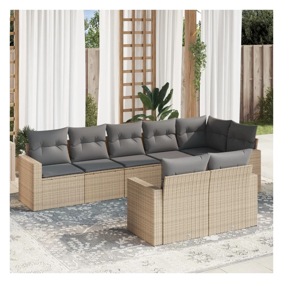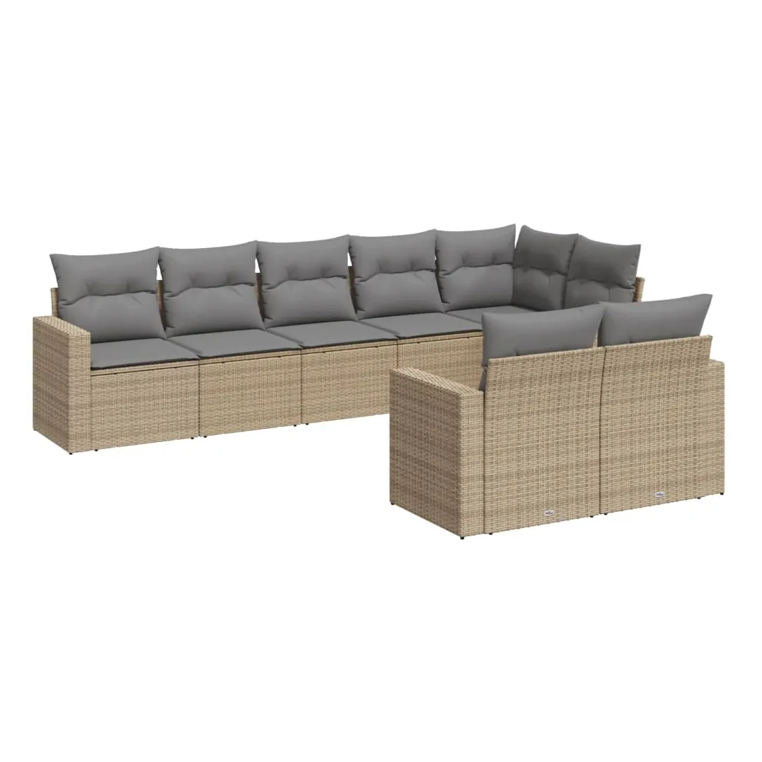 Salon de jardin avec coussins 8 pcs beige résine tressée