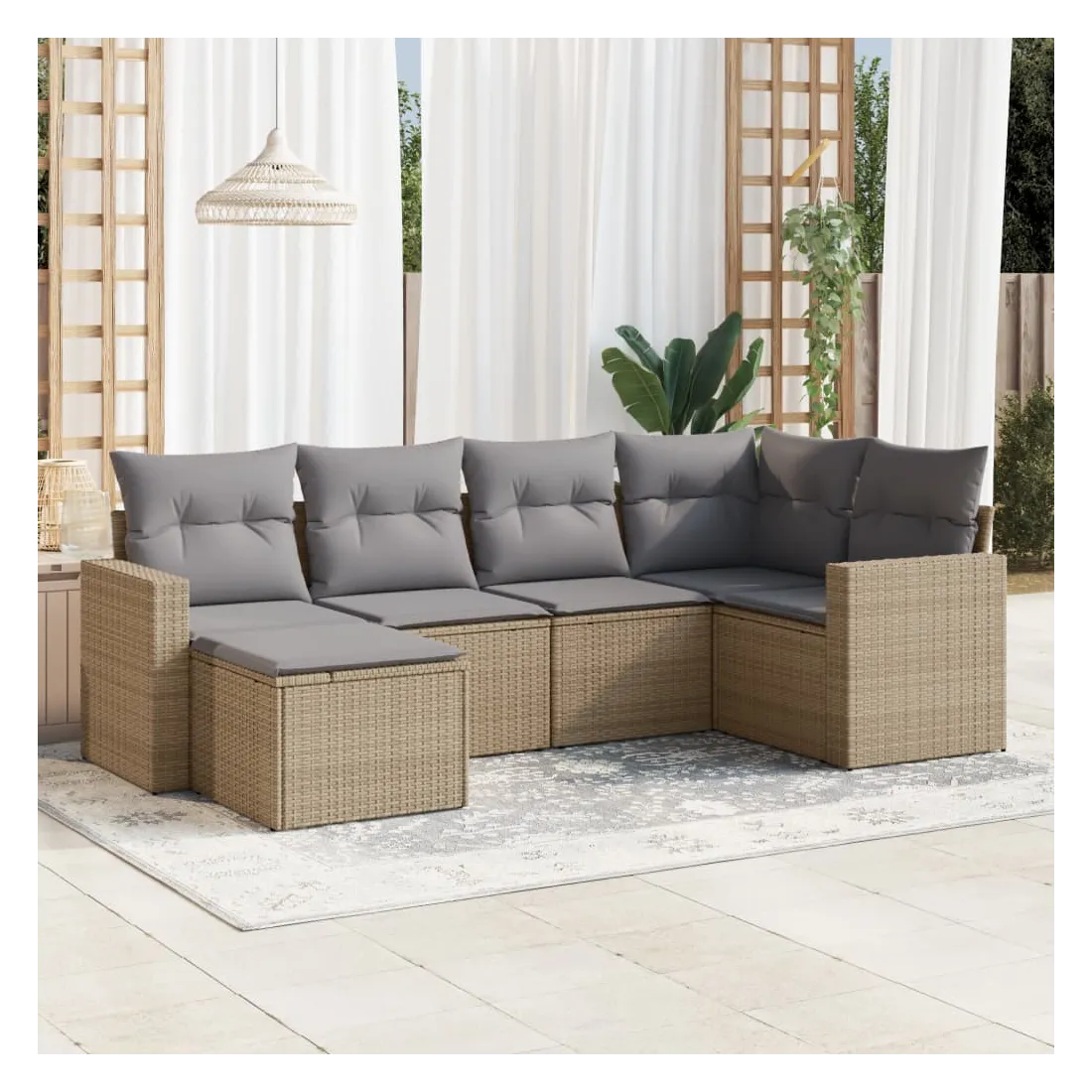 Cet ensemble de canapés de jardin est le complément parfait de votre arrière-cour, terrasse ou patio, offrant un espace confortable et accueillant pour discuter avec la famille et les amis ou simplement se détendre et profiter de l'extérieur. Matériau durable : la résine tressée, également connue sous le nom de poly rotin, est un matériau synthétique solide et nécessitant peu d'entretien qui ressemble au rotin naturel. Il est léger, facile à nettoyer et couramment utilisé pour les meubles d'extérieur en raison de sa durabilité et de ses propriétés de résistance aux intempéries.Fonction de rangement avec sac résistant à l'eau : chaque siège de jardin dispose d'un espace de rangement sous l'assise, complété par un sac résistant à l'eau pour ranger les coussins, les jouets et d'autres objets. Les sacs intérieurs sont dotés d'un couvercle et peuvent être solidement fixés aux sièges à l'aide de bandes auto-agrippantes pour plus de stabilité.Expérience d'assise confortable : ce mobilier d'extérieur, doté de coussins épais, offre une expérience d'assise confortable.Housse amovible et lavable : ces coussins de siège sont dotés de housses amovibles pour un lavage et un entretien faciles.Conception modulaire : cet ensemble de meubles d'extérieur a une conception modulaire, ce qui le rend complètement flexible et facile à déplacer, afin que vous puissiez créer un agencement de meubles d'extérieur personnalisé. Bon à savoir :Pour que vos meubles d'extérieur restent beaux, nous vous recommandons de les protéger avec une housse imperméable.