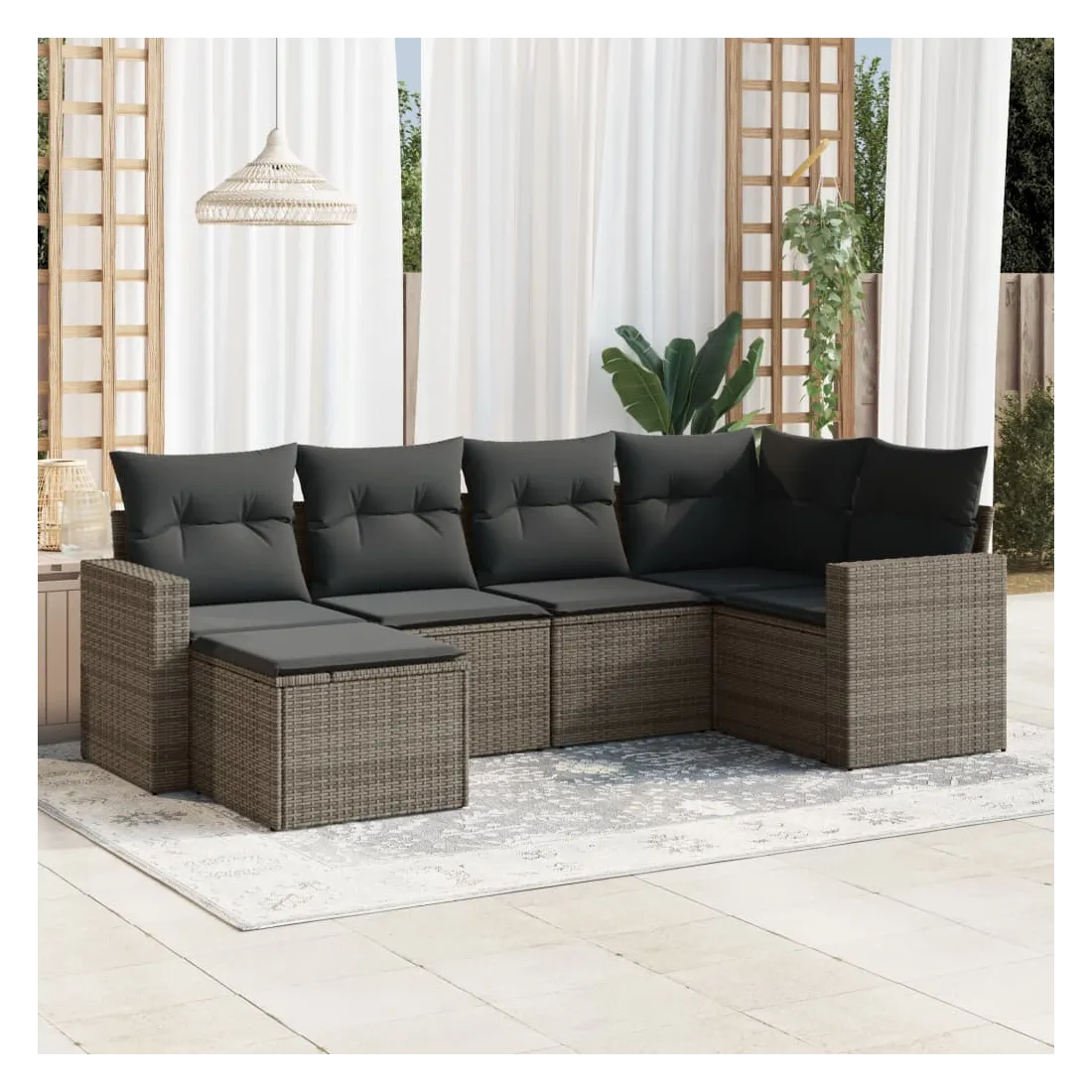 Cet ensemble de canapés de jardin est le complément parfait de votre arrière-cour, terrasse ou patio, offrant un espace confortable et accueillant pour discuter avec la famille et les amis ou simplement se détendre et profiter de l'extérieur. Matériau durable : la résine tressée, également connue sous le nom de poly rotin, est un matériau synthétique solide et nécessitant peu d'entretien qui ressemble au rotin naturel. Il est léger, facile à nettoyer et couramment utilisé pour les meubles d'extérieur en raison de sa durabilité et de ses propriétés de résistance aux intempéries.Fonction de rangement avec sac résistant à l'eau : chaque siège de jardin dispose d'un espace de rangement sous l'assise, complété par un sac résistant à l'eau pour ranger les coussins, les jouets et d'autres objets. Les sacs intérieurs sont dotés d'un couvercle et peuvent être solidement fixés aux sièges à l'aide de bandes auto-agrippantes pour plus de stabilité.Expérience d'assise confortable : ce mobilier d'extérieur, doté de coussins épais, offre une expérience d'assise confortable.Housse amovible et lavable : ces coussins de siège sont dotés de housses amovibles pour un lavage et un entretien faciles.Conception modulaire : cet ensemble de meubles d'extérieur a une conception modulaire, ce qui le rend complètement flexible et facile à déplacer, afin que vous puissiez créer un agencement de meubles d'extérieur personnalisé. Bon à savoir :Pour que vos meubles d'extérieur restent beaux, nous vous recommandons de les protéger avec une housse imperméable.