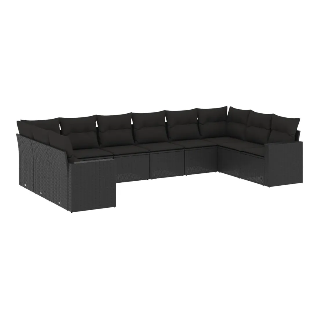 Salon de jardin 10 pcs avec coussins noir résine tressée