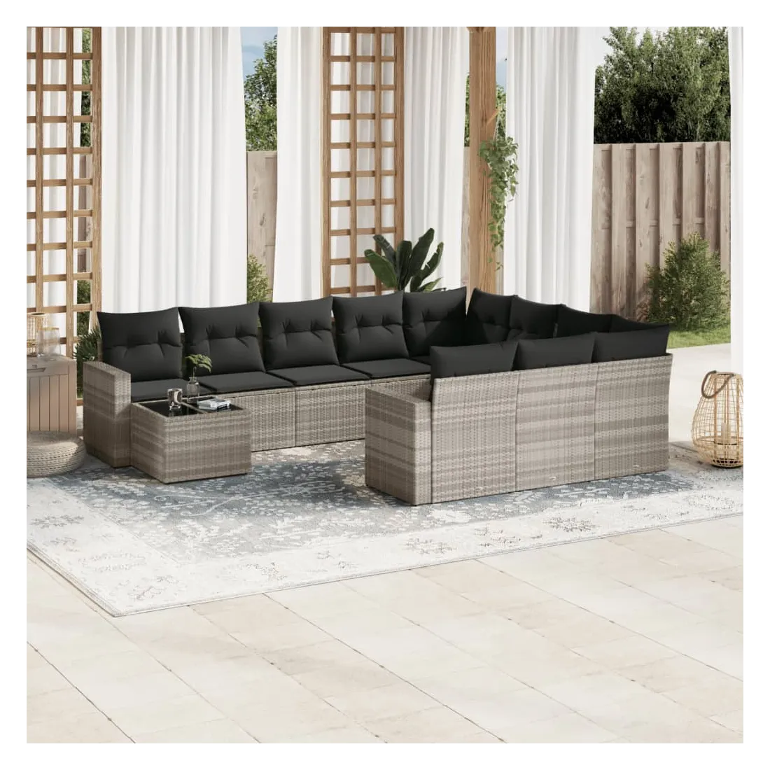 Cet ensemble de canapés de jardin est le complément parfait de votre arrière-cour, terrasse ou patio, offrant un espace confortable et accueillant pour discuter avec la famille et les amis ou simplement se détendre et profiter de l'extérieur. Matériau durable : la résine tressée, également connue sous le nom de poly rotin, est un matériau synthétique solide et nécessitant peu d'entretien qui ressemble au rotin naturel. Il est léger, facile à nettoyer et couramment utilisé pour les meubles d'extérieur en raison de sa durabilité et de ses propriétés de résistance aux intempéries.Fonction de rangement avec sac résistant à l'eau : chaque siège de jardin dispose d'un espace de rangement sous l'assise, complété par un sac résistant à l'eau pour ranger les coussins, les jouets et d'autres objets. Les sacs intérieurs sont dotés d'un couvercle et peuvent être solidement fixés aux sièges à l'aide de bandes auto-agrippantes pour plus de stabilité.Dessus en verre : le dessus de la table d'extérieur est fabriqué en verre trempé solide et durable, ce qui le rend facile à nettoyer avec un chiffon humide et ajoute une touche d'élégance à votre espace extérieur.Housse amovible et lavable : ces coussins de siège sont dotés de housses amovibles pour un lavage et un entretien faciles.Conception modulaire : cet ensemble de meubles d'extérieur a une conception modulaire, ce qui le rend complètement flexible et facile à déplacer, afin que vous puissiez créer un agencement de meubles d'extérieur personnalisé. Bon à savoir :Pour que vos meubles d'extérieur restent beaux, nous vous recommandons de les protéger avec une housse imperméable.