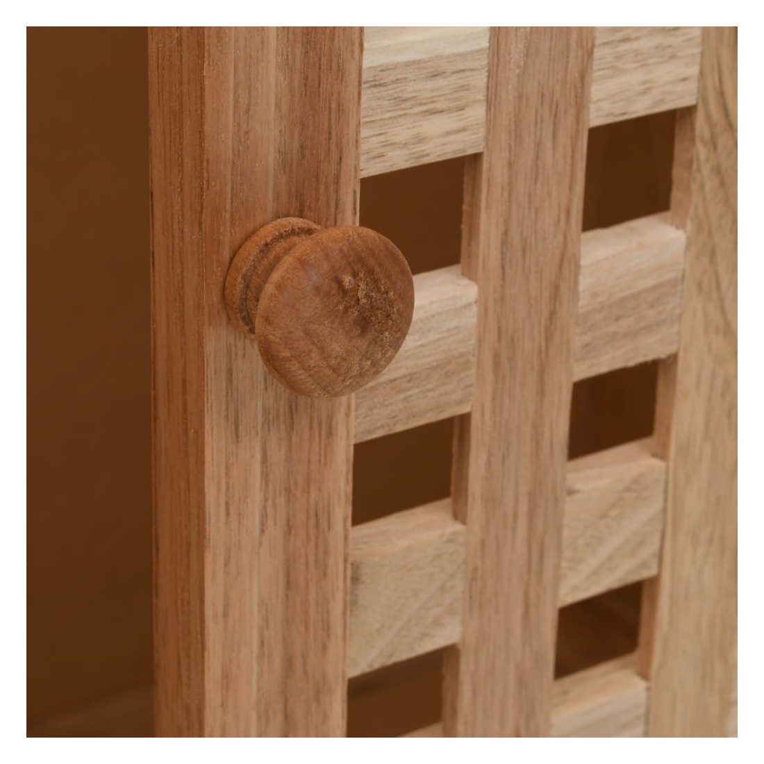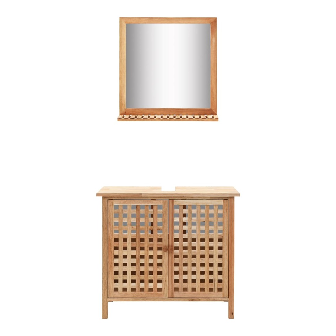 Notre armoire pour lavabo avec miroir a un style naturel attrayant et attirera tous les regards dans votre salle de bain. Fabriqué en bois de noyer massif et contreplaqué, cet ensemble d'armoire pour lavabo et de miroir est robuste et durable. L'armoire de salle de bain a deux portes en treillis, ce qui permet une bonne ventilation des articles à l'intérieur. Le grand compartiment et l'étagère à l'intérieur de l'armoire offrent suffisamment d'espace de rangement pour les serviettes et les produits d'hygiène. Le miroir est équipé d'une solide tablette à lattes pour le rangement des articles plus petits comme les brosses à dents, les produits cosmétiques, etc.