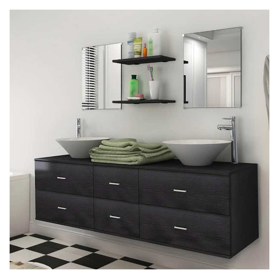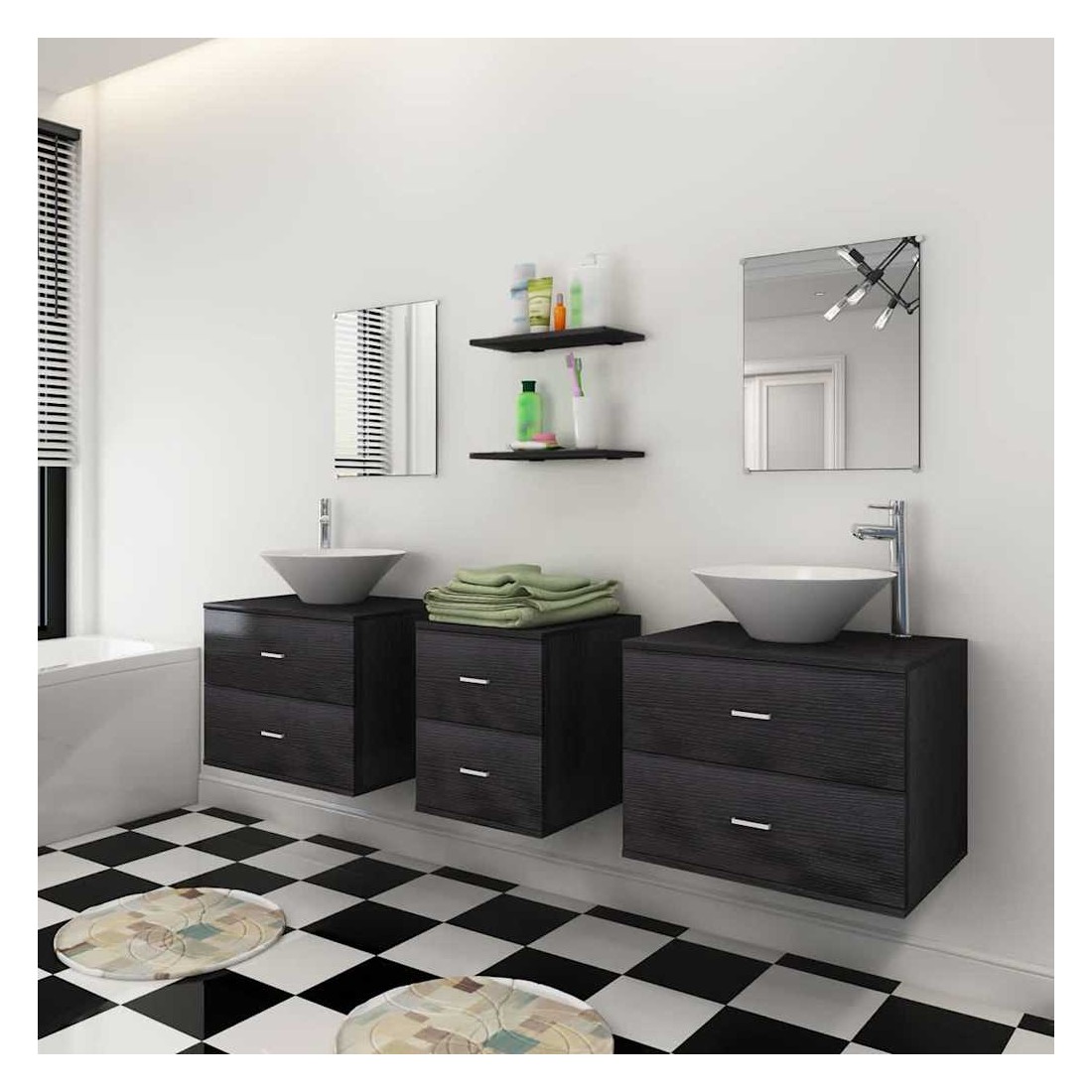 Mobilier de salle de bain avec lavabo 7 pcs Noir