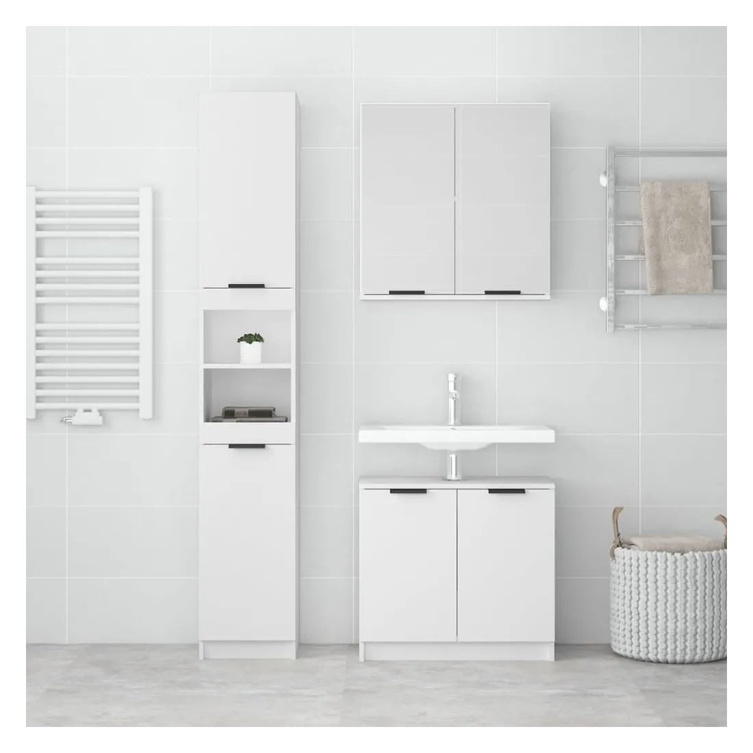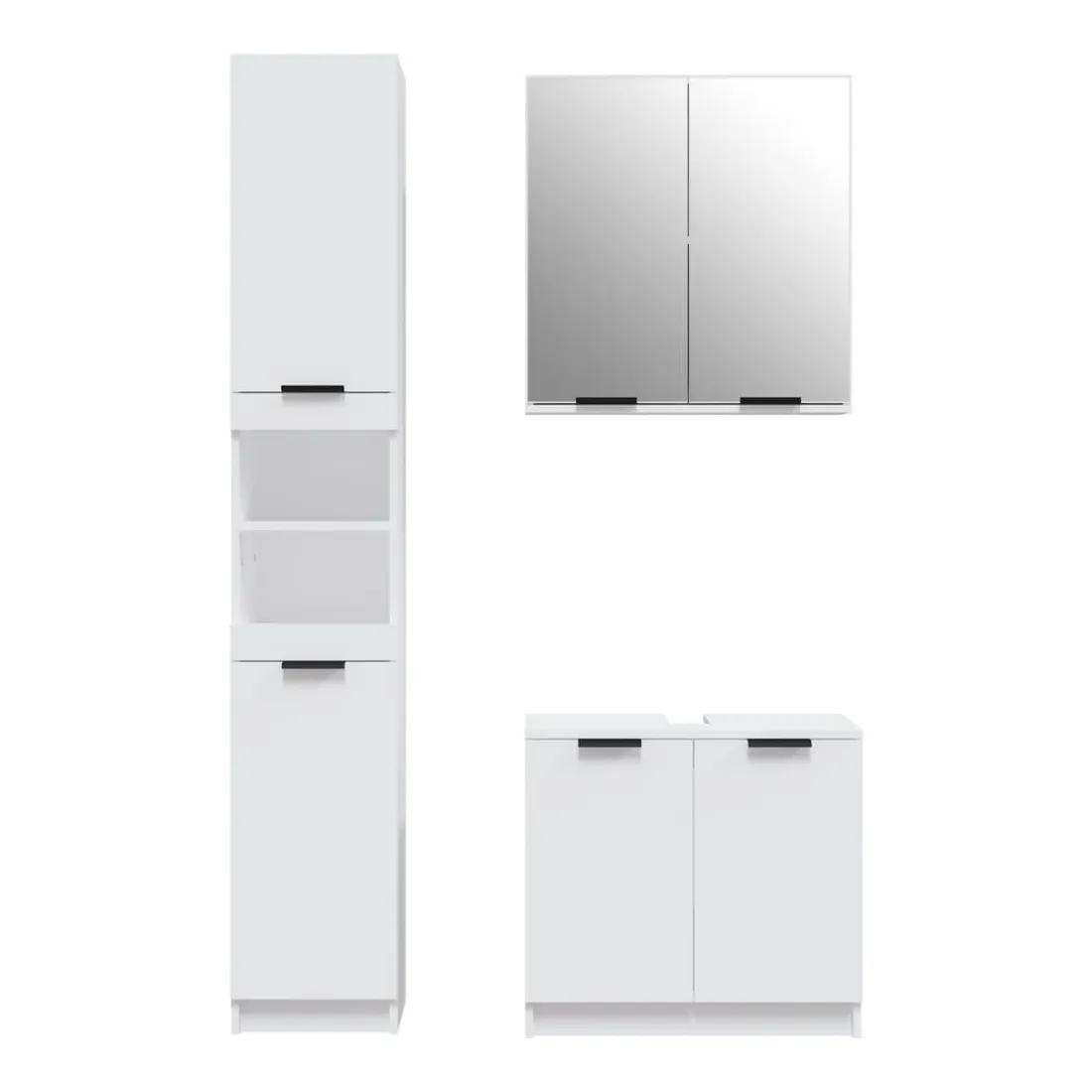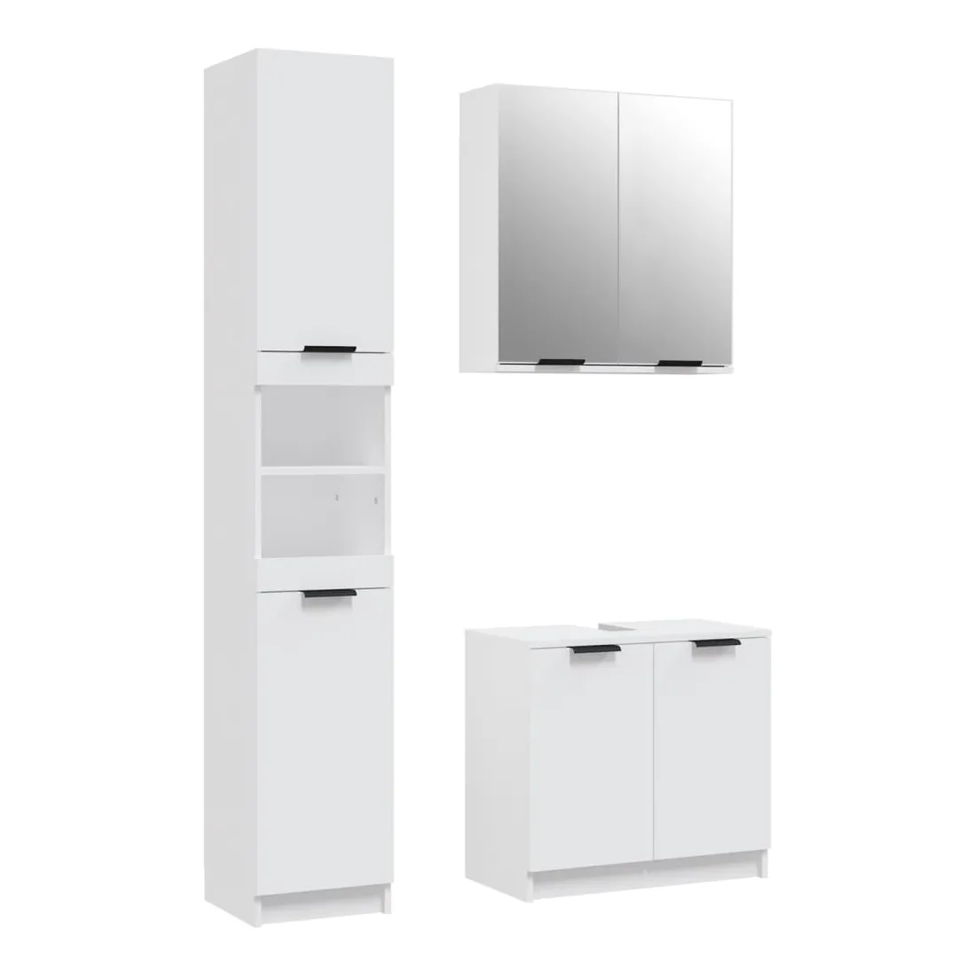 Cet ensemble d'armoires de salle de bain attrayant, avec un grand espace de rangement, présente un design élégant mais pratique. Matériau facile à nettoyer : le bois d'ingénierie est d'une qualité exceptionnelle avec une surface lisse et présente également résistance, stabilité et résistance à l'humidité. Grand espace de rangement : l'espace de rangement facilite l'organisation des articles dans ces meubles de salle de bain. Design élégant : les lignes épurées et le design élégant se fondent parfaitement dans votre salle de bain. Remarque :Les vis et les chevilles pour l'intérieur du mur ne sont pas incluses. Recherchez et utilisez des vis et des chevilles adaptées à vos murs. Si vous n'êtes pas sûr, demandez conseil à un professionnel. Lisez et suivez attentivement chaque étape des instructions. Chaque produit est livré avec un manuel de montage dans la boîte pour un montage facile. Attention :Afin d'éviter qu'il ne bascule, ce produit doit être utilisé avec le dispositif de fixation murale fourni.