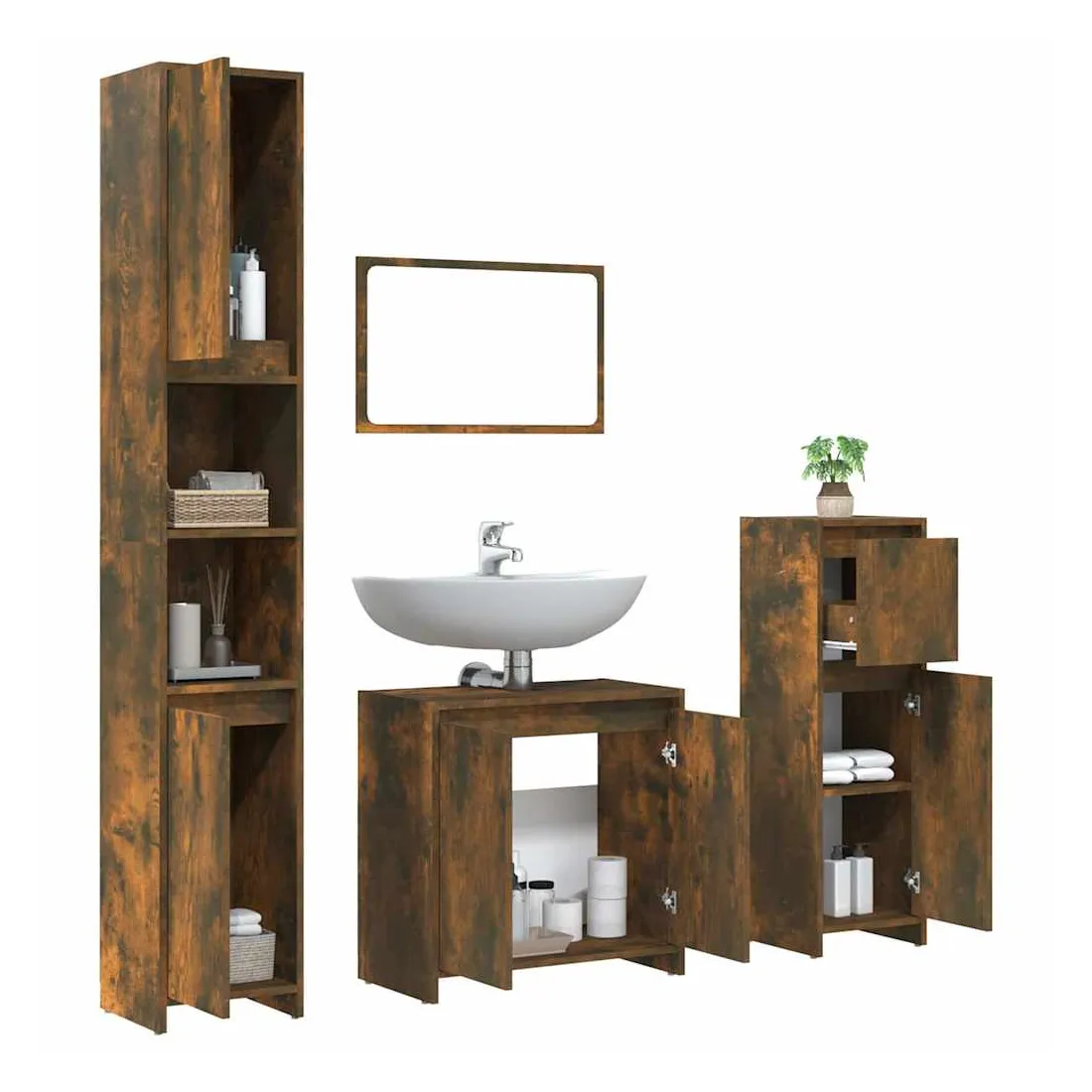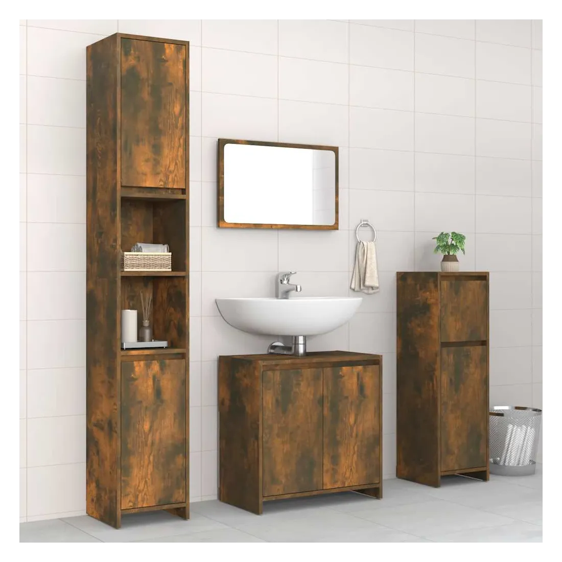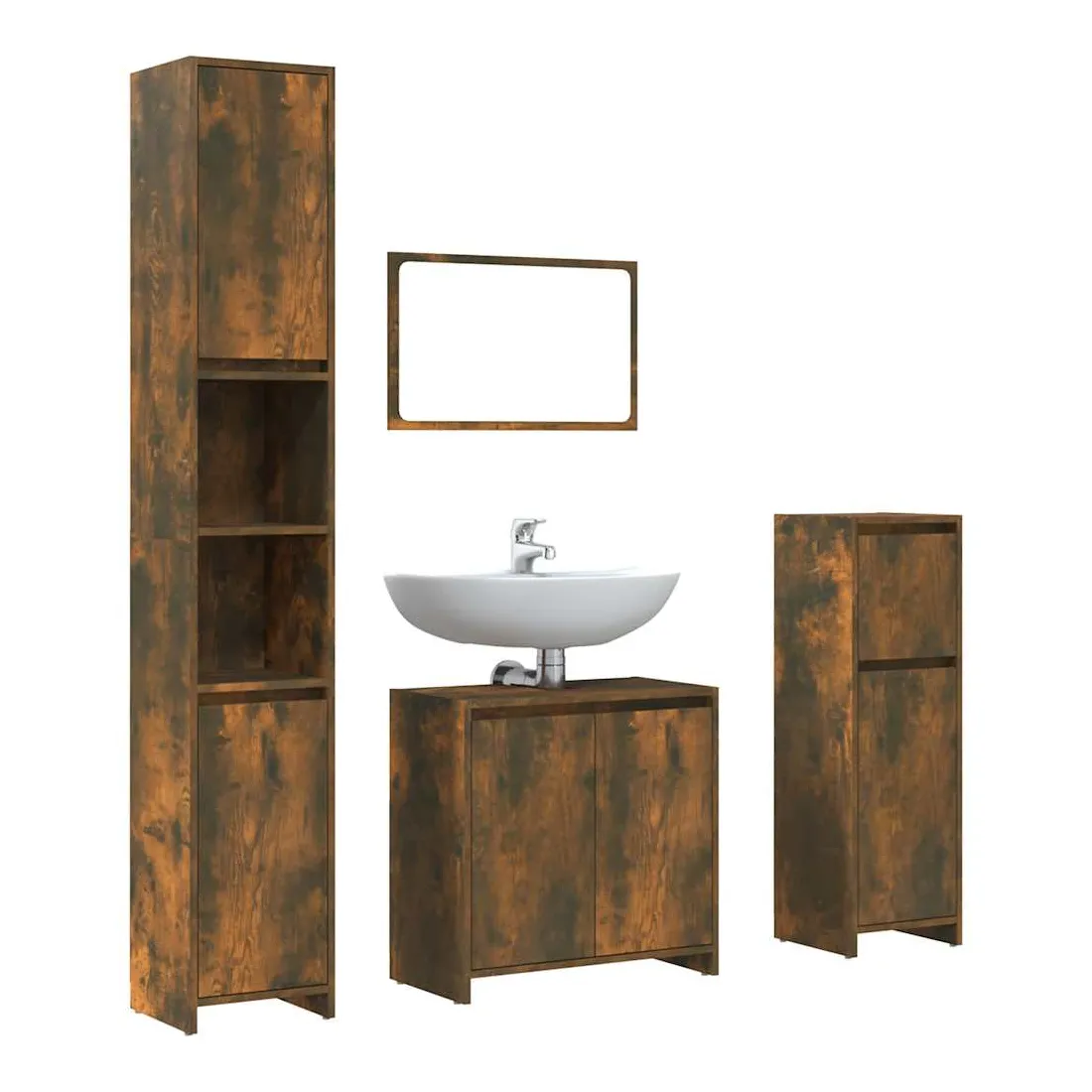 Ensemble de meubles de salle de bain 4 pcs Chêne fumé Bois