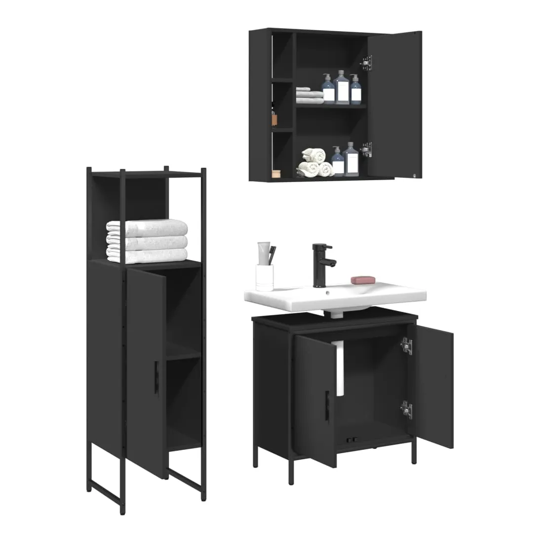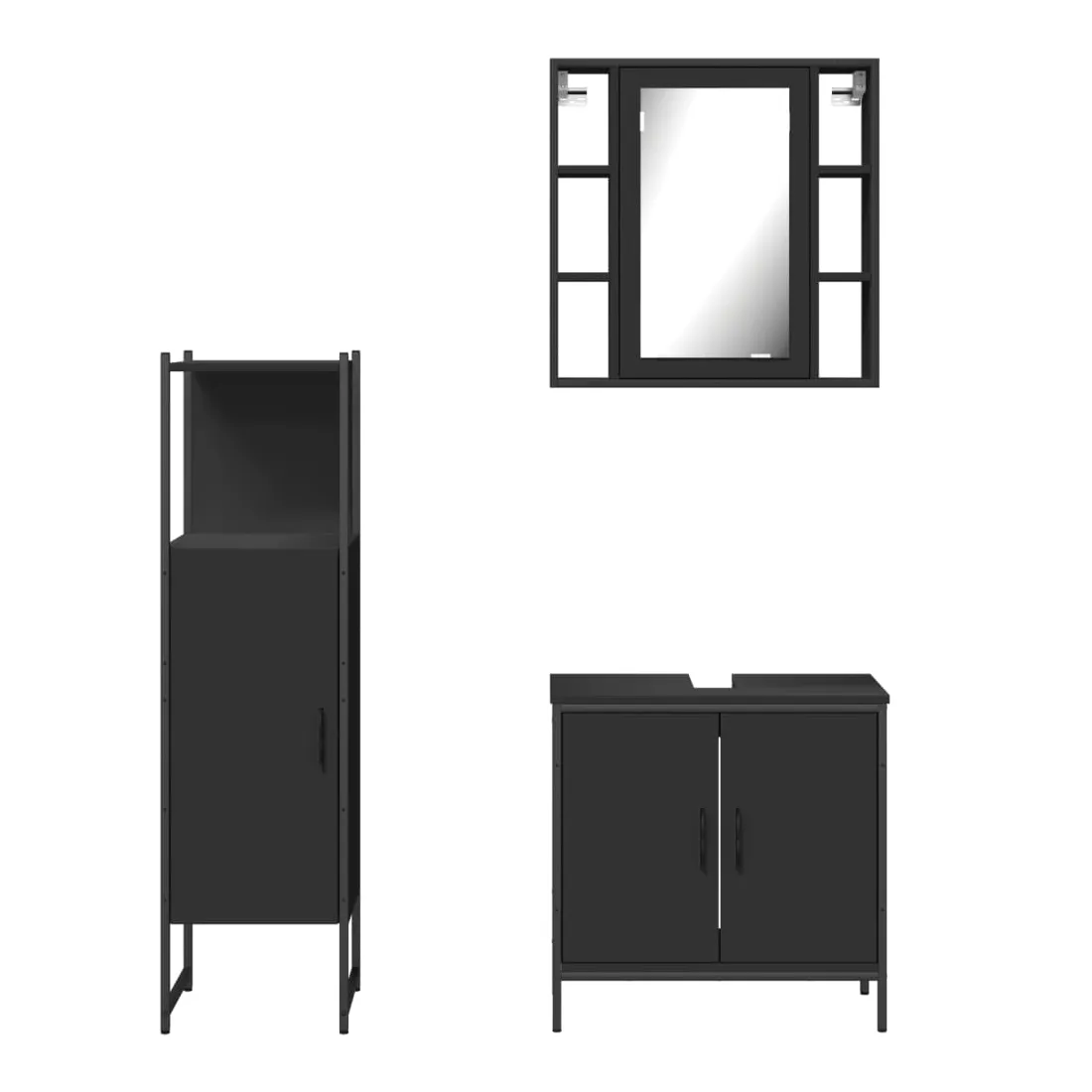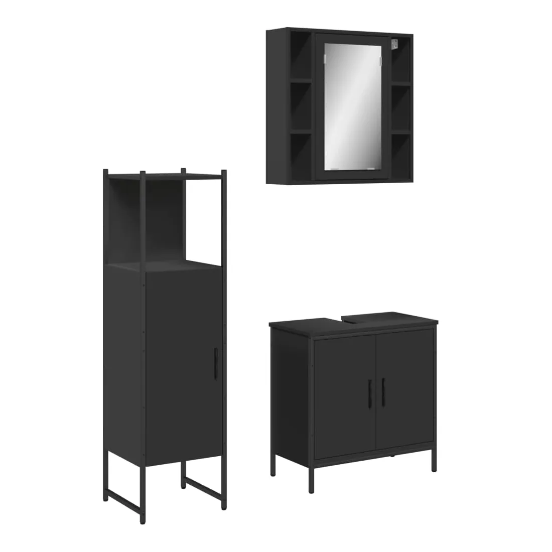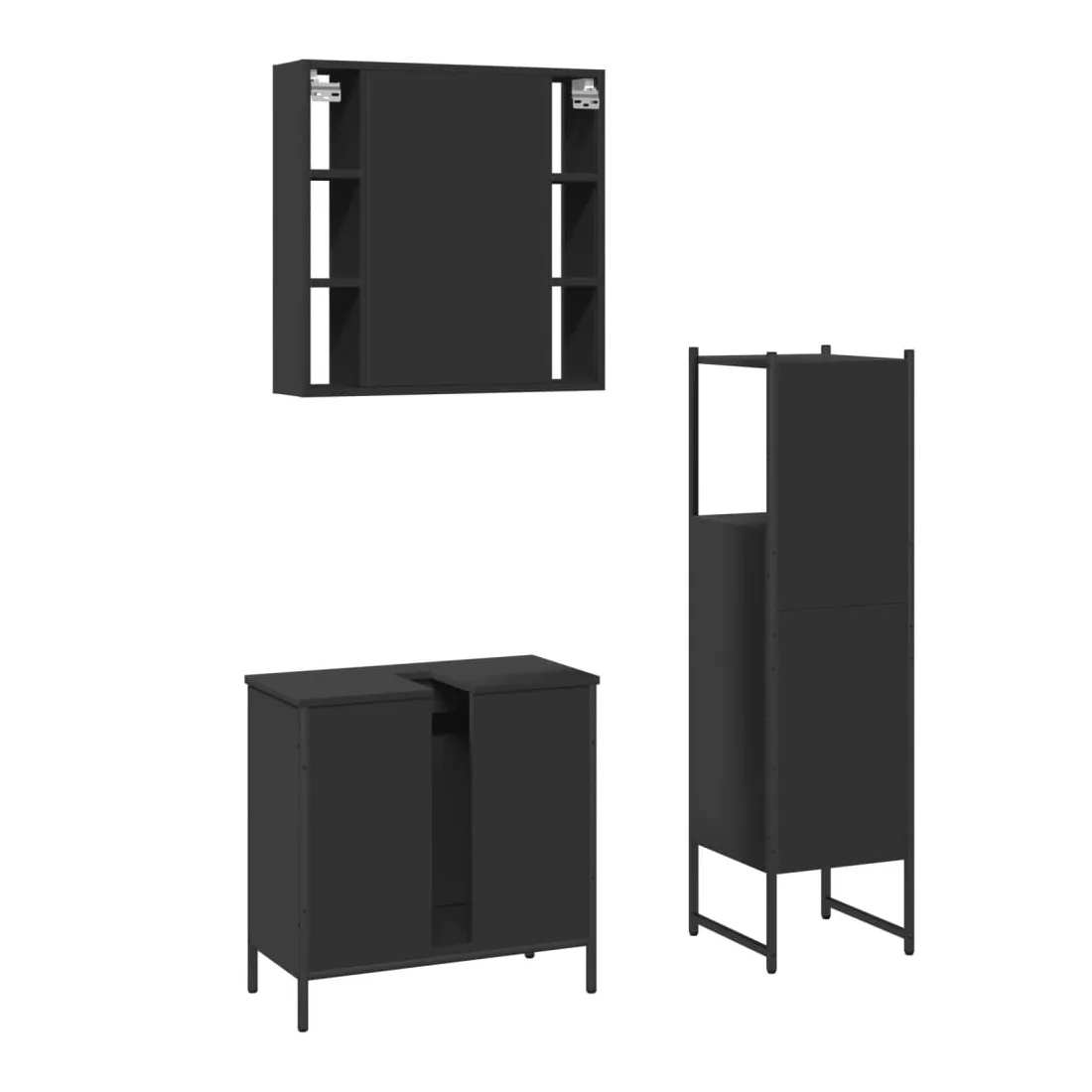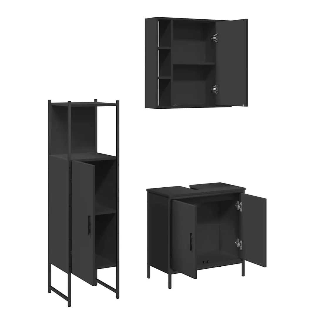 Ensemble d'armoires salle de bain 3 pcs noir bois d'ingénierie