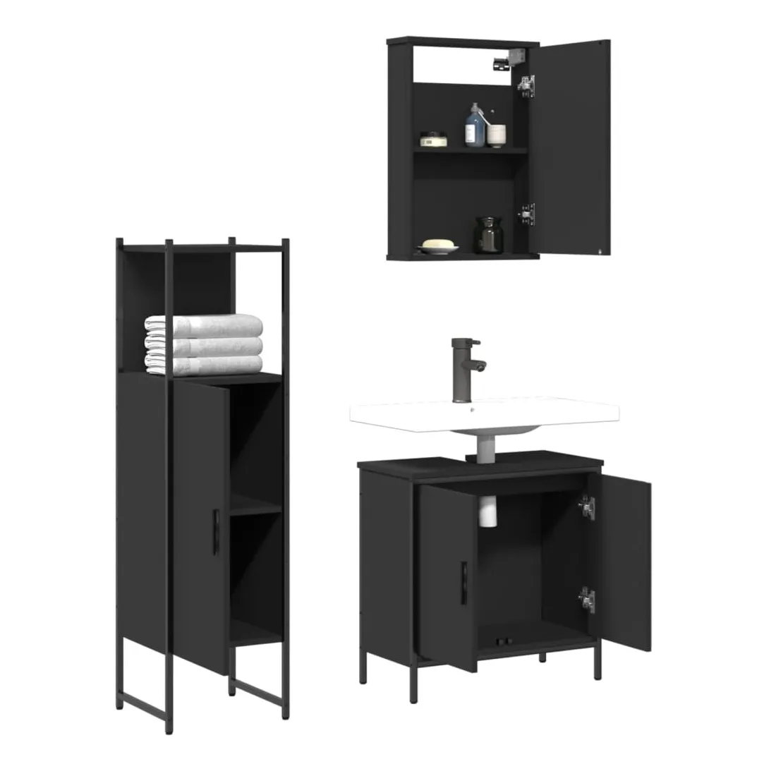 Cet ensemble de meubles de salle de bain pratique, avec un espace de rangement spacieux, est un excellent supplément à votre salle de bain, ce qui lui donne une apparence ordonnée et saisissante ! Matériau durable : le bois d'ingénierie est d'une qualité exceptionnelle avec une surface lisse et présente également résistance, stabilité et résistance à l'humidité.Grand espace de rangement : les meubles de salle de bain offrent diverses options de rangement et un espace spacieux pour ranger des objets dans votre salle de bain.Fonction murale : l'armoire de toilette peut être fixée au mur pour économiser de l'espace au sol, ce qui la rend particulièrement adaptée aux pièces avec un espace limité.Design peu encombrant : la partie supérieure de l'armoire de salle de bains est idéale pour placer le lavabo, ce qui permet d'utiliser pleinement l'espace vacant sous le lavabo.Image claire : la face en verre du miroir offre une réflexion fine et non déformée. Il convient donc pour se maquiller, se raser ou vérifier son costume avant de sortir. Attention :Pour éviter qu'il ne bascule, ce produit doit être utilisé avec le dispositif de fixation murale fourni. Bon à savoir :Les vis et les chevilles pour l'intérieur du mur ne sont pas incluses. Nous vous conseillons de trouver et d'utiliser des vis et des chevilles adaptées spécifiquement à vos murs. Si vous n'êtes pas sûr, vous pouvez consulter un professionnel. Veuillez lire et suivre chaque étape des instructions.