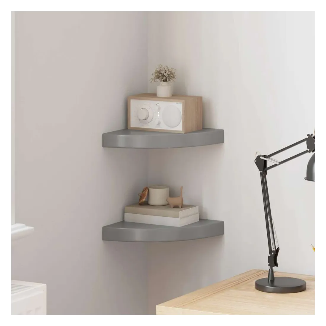 Cet ensemble de 2 étagères d'angle élégantes est idéal pour afficher vos livres préférés, décorations, photos, prix, etc. Cette étagère de présentation, fabriquée en MDF alvéolaire de qualité et en métal solide, est stable et durable. Avec un système de montage invisible, l’étagère murale est facile à installer et sert d’endroit idéal pour stocker des articles tels que des récompenses, des livres, des objets de collection, des ornements, etc. Cette étagère flottante convient à tout décor et transforme un mur vide en une fonctionnalité de design !