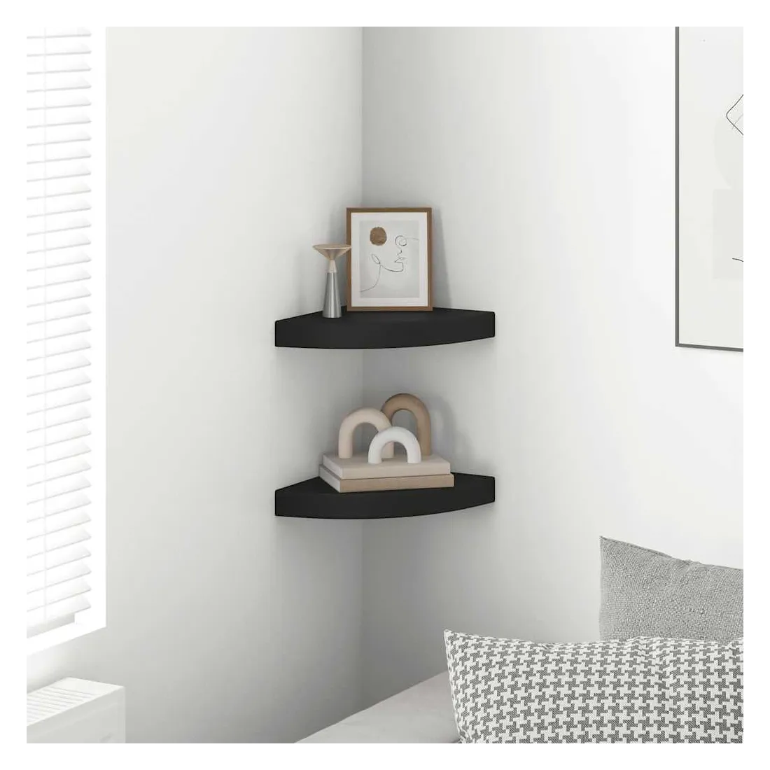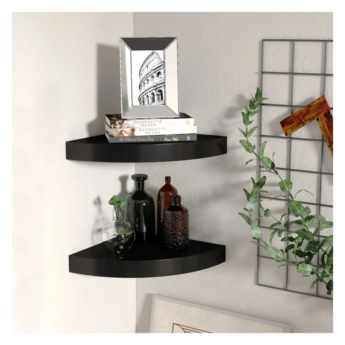 Cet ensemble de 2 étagères d'angle élégantes est idéal pour afficher vos livres préférés, décorations, photos, prix, etc. Cette étagère de présentation, fabriquée en MDF alvéolaire de qualité et en métal solide, est stable et durable. Avec un système de montage invisible, l’étagère murale est facile à installer et sert d’endroit idéal pour stocker des articles tels que des récompenses, des livres, des objets de collection, des ornements, etc. Cette étagère flottante convient à tout décor et transforme un mur vide en une fonctionnalité de design !