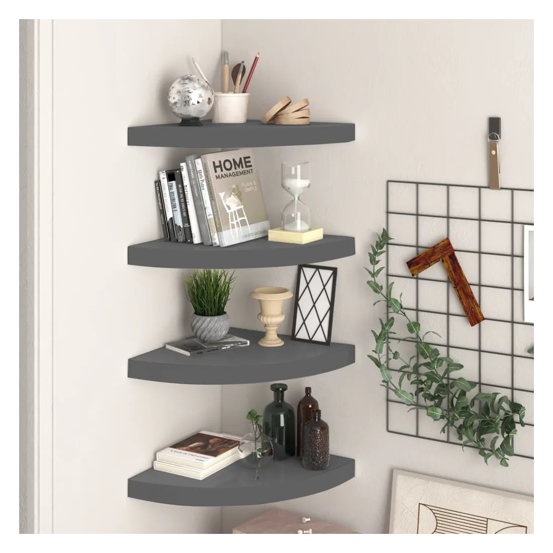 Cet ensemble de 4 étagères d'angle élégantes est idéal pour afficher vos livres préférés, décorations, photos, prix, etc. Cette étagère de présentation, fabriquée en MDF alvéolaire de qualité et en métal solide, est stable et durable. Avec un système de montage invisible, l’étagère murale est facile à installer et sert d’endroit idéal pour stocker des articles tels que des récompenses, des livres, des objets de collection, des ornements, etc. Cette étagère flottante convient à tout décor et transforme un mur vide en une fonctionnalité de design !