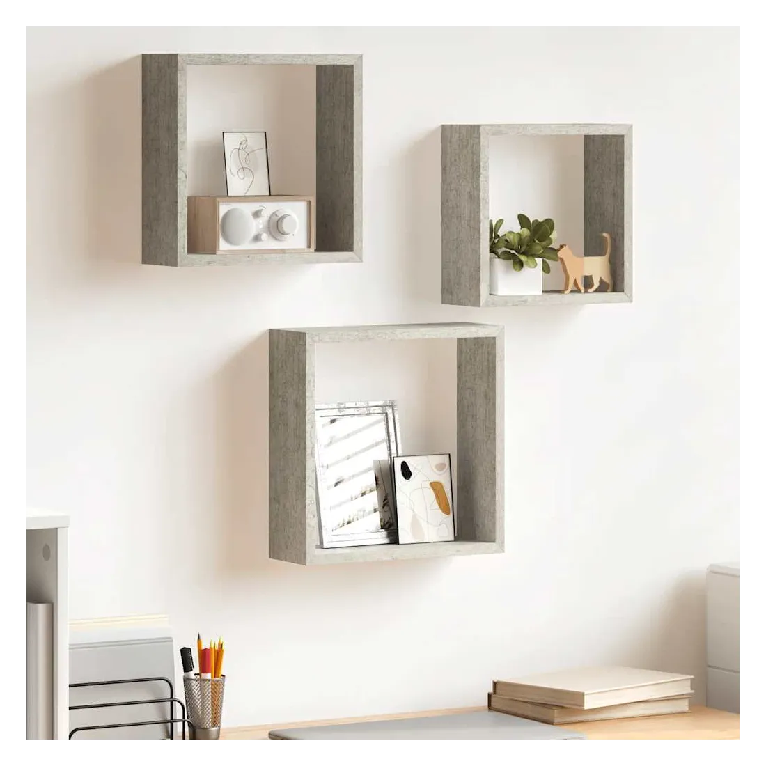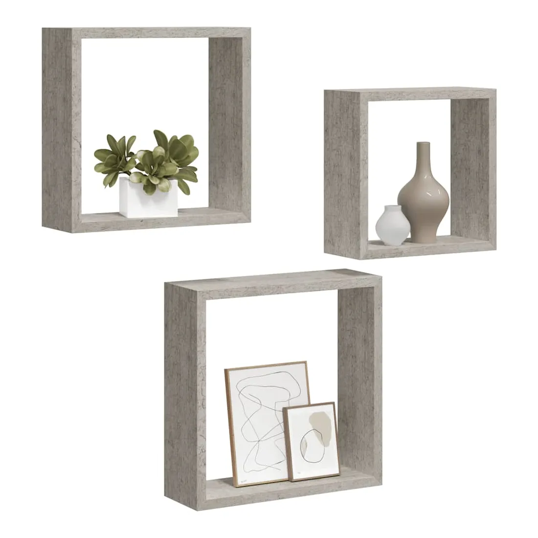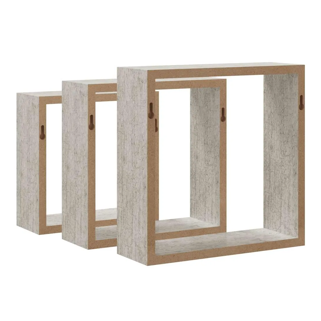 Ces étagères murales cubiques élégantes sont destinées à être le projecteur de toute pièce, vous pouvez les organiser en combinaison ou individuellement. Avec un système de montage invisible, les étagères d’angle sont faciles à installer et servent comme l’endroit idéal pour stocker des articles tels que des photos, des livres, des objets de collection, des ornements, etc. Elles sont fabriquées en MDF, ce qui les rend stables et durables. Cet ensemble de 3 étagères suspendues s'adapte à la plupart des décors et transforme facilement un mur vide en un élément de design !