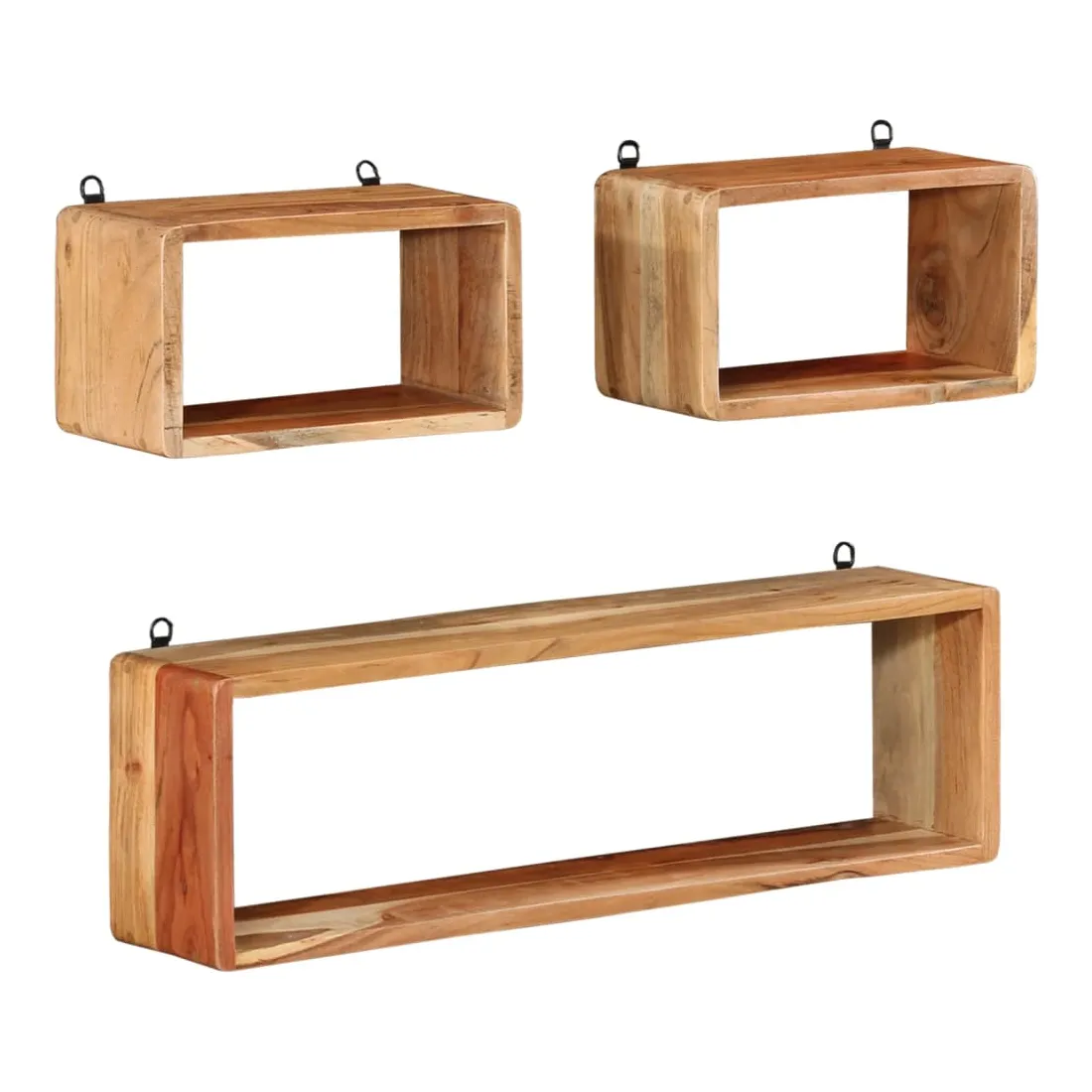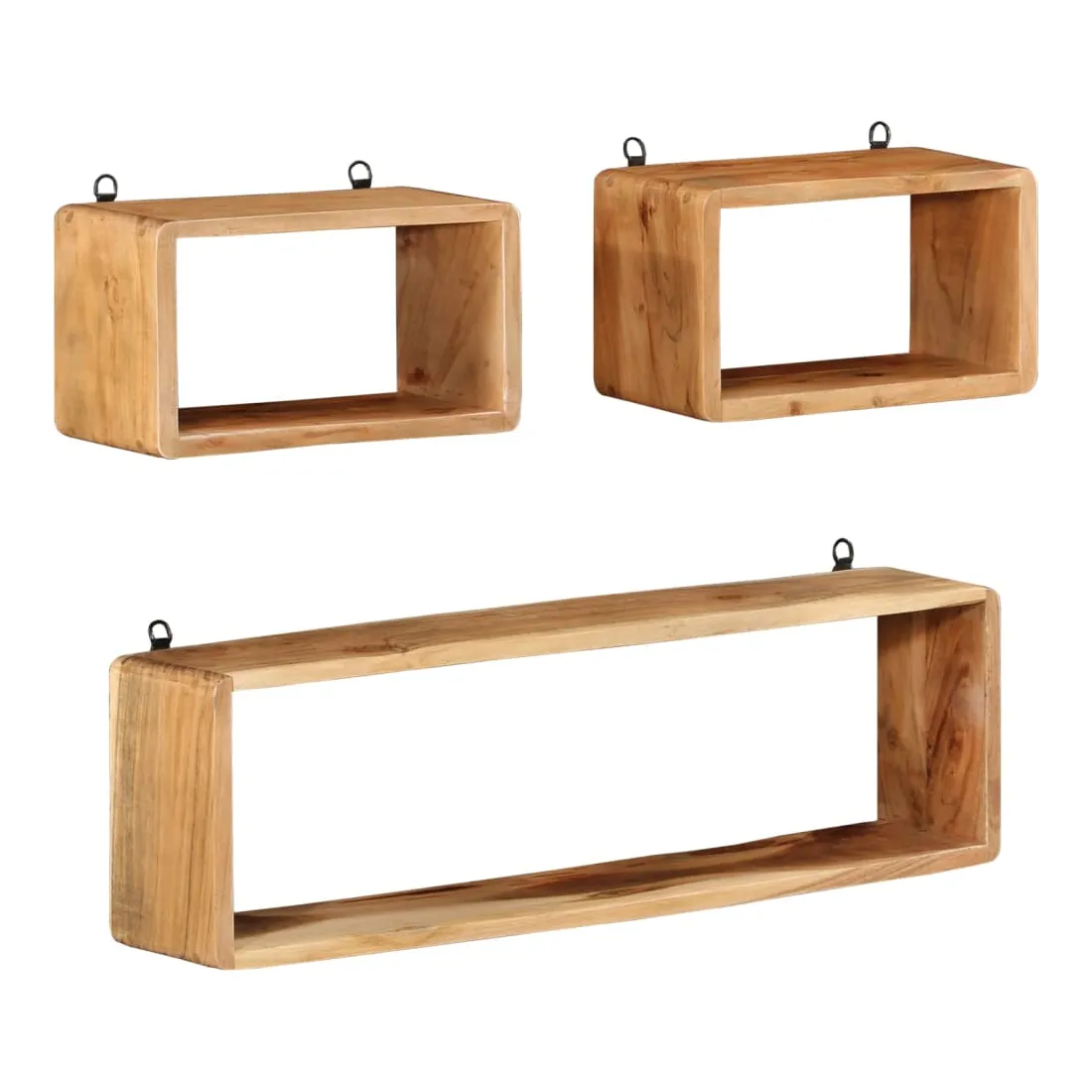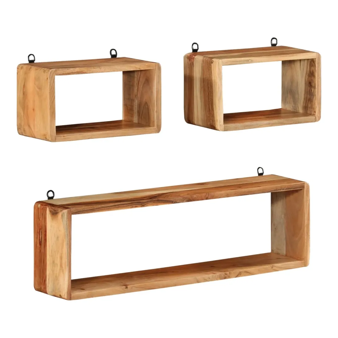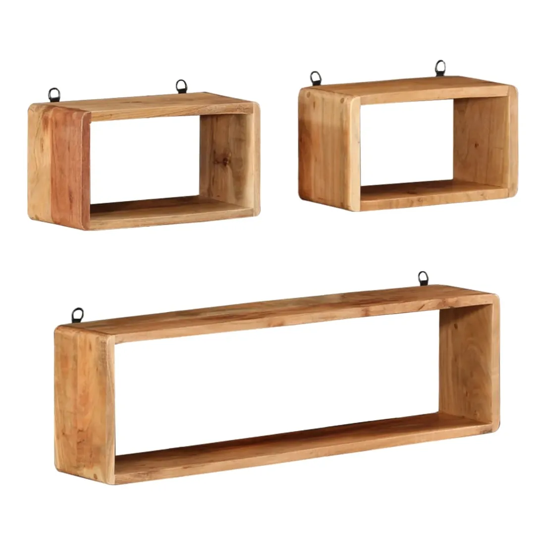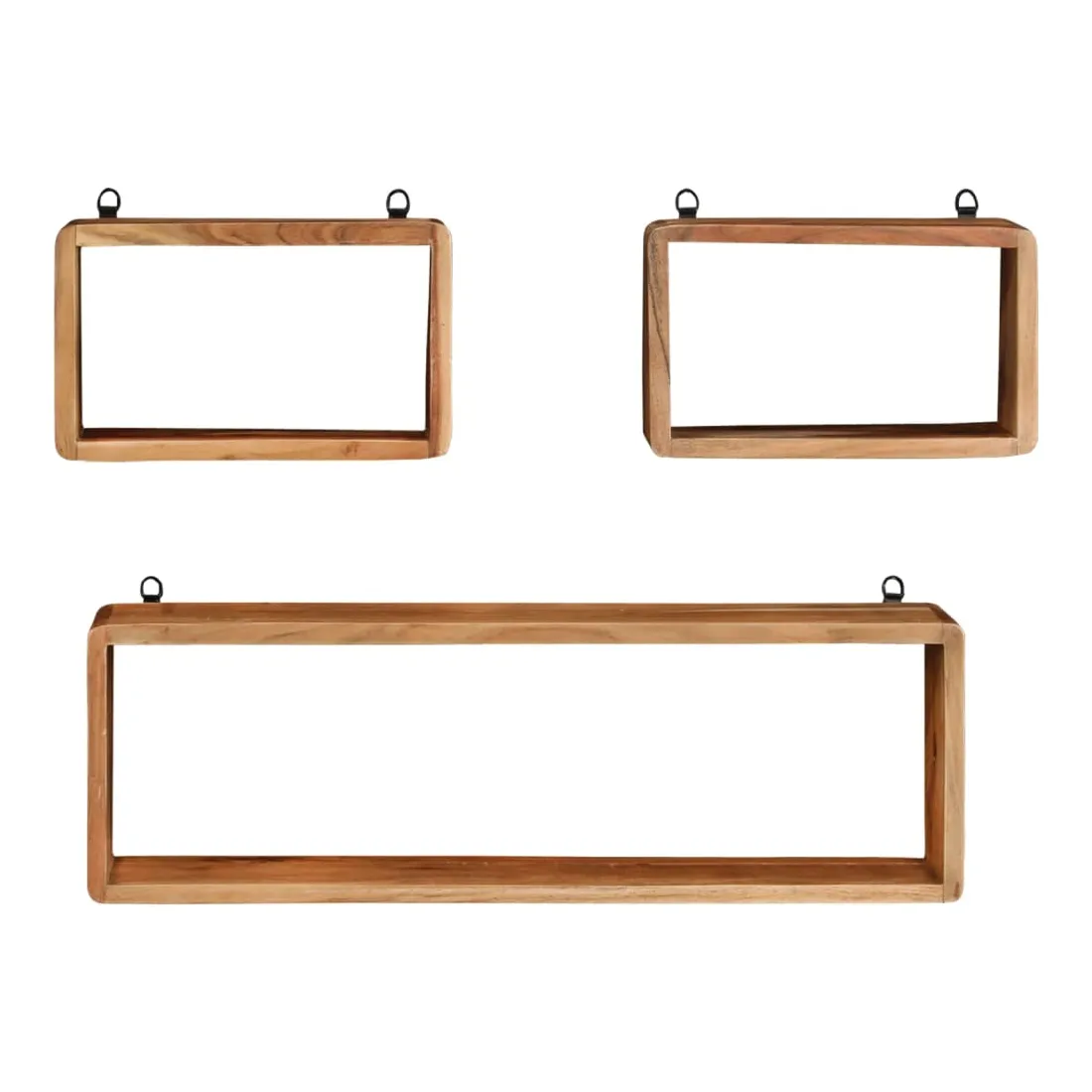 Maximisez votre espace de rangement et de mise en scène intérieur et transformez votre mur en charme attrayant avec cet ensemble d'étagères murales pratiques et décoratives ! Fabriquées en bois d'acacia massif avec une finition naturelle, ces étagères murales sont extrêmement stables et durables. L'artisanat exquis et les beaux grains de bois d'acacia rendent chaque pièce de meuble unique et légèrement différente l'une de l'autre. De plus, cet ensemble d'étagères en bois constitue une solution idéale pour ranger et exposer vos livres, prix, objets de collection, ornements, etc. Remarque importante : les grains de bois varient d'une pièce à l'autre, rendant chaque pièce unique. La livraison est aléatoire, ce qui garantit l'exclusivité et l'individualité de votre produit.