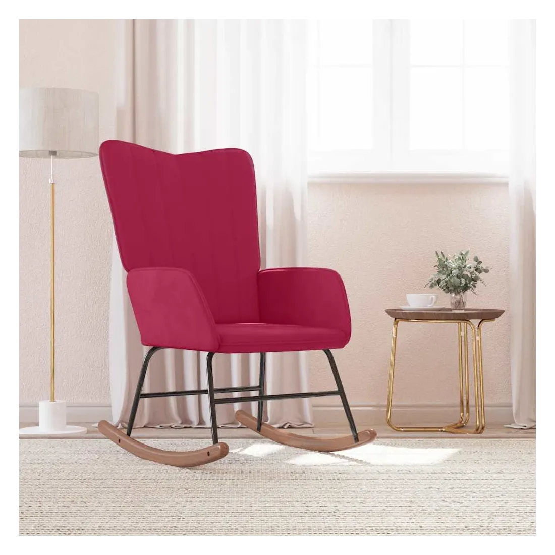 Cette chaise à bascule est un excellent supplément à votre décor existant. Ce fauteuil, avec quelques lignes sur son dossier, est esthétique. Grâce à sa mousse rembourrée recouverte de velours doux au toucher, vous pourrez profiter d'un confort optimal pendant votre temps d'assise. Avec la conception de longs rails à bascule, la chaise de relaxation ne basculera pas facilement. Soutenue par un cadre et des pieds en acier, ainsi que par des rails à bascule en bois, la chaise de salon est stable et durable.