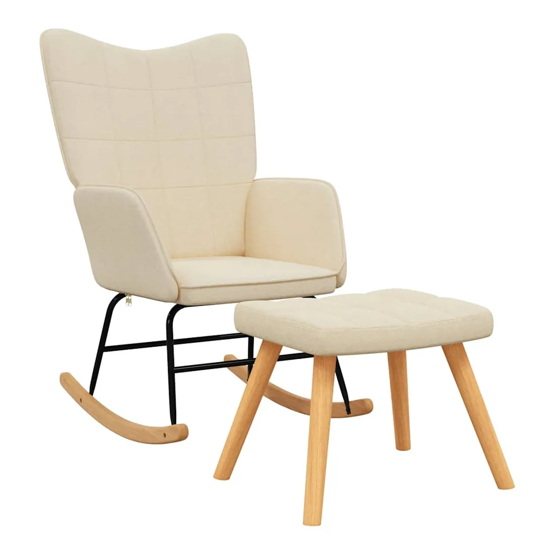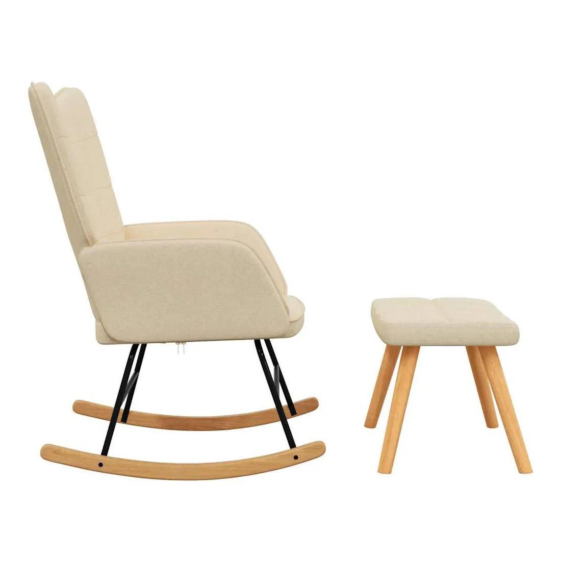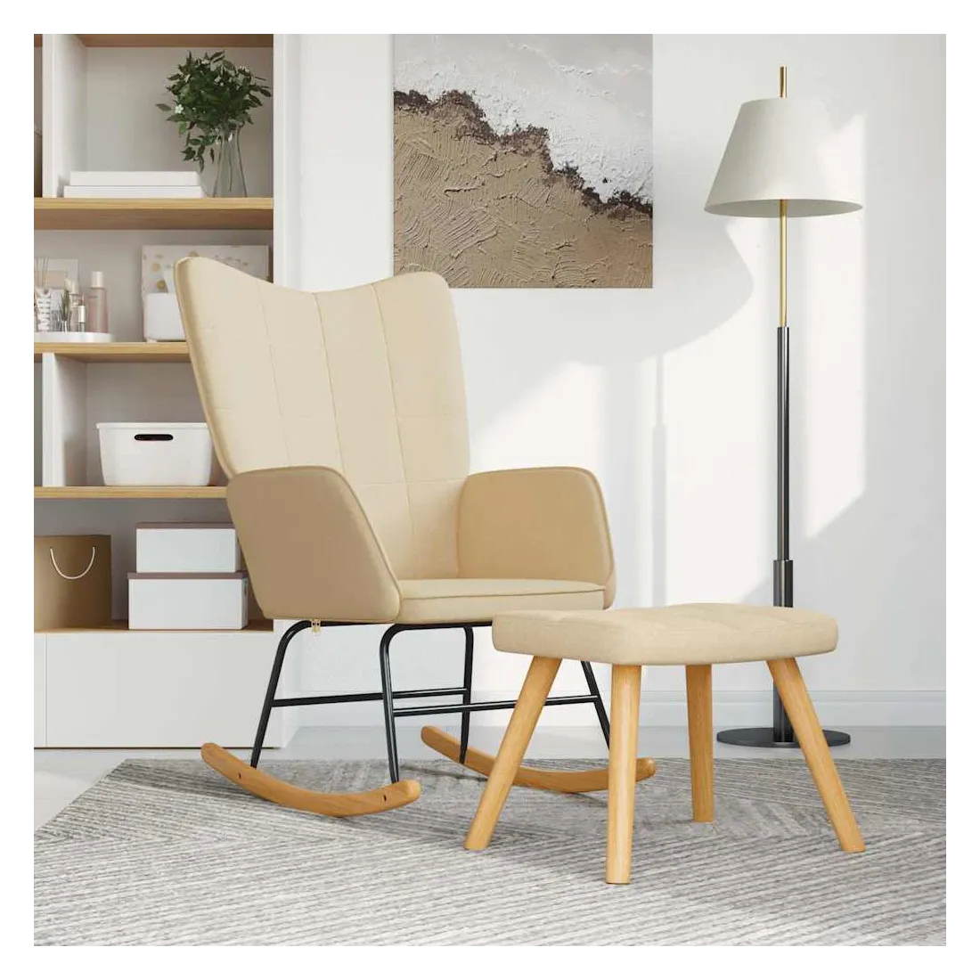 Cette chaise à bascule avec tabouret, au design chic et élégant, apportera une touche de modernité à votre décoration. Dotée de quelques blocs, cette chaise de relaxation est esthétique. Grâce à sa mousse rembourrée recouverte d'un tissu doux au toucher, vous pourrez profiter d'un confort optimal pendant votre temps d'assise. Avec la conception de longs rails à bascule, le fauteuil ne basculera pas facilement. De plus, soutenue par un cadre et des pieds en acier, ainsi que par des rails à bascule en bois, la chaise de salon avec tabouret est stable et durable.