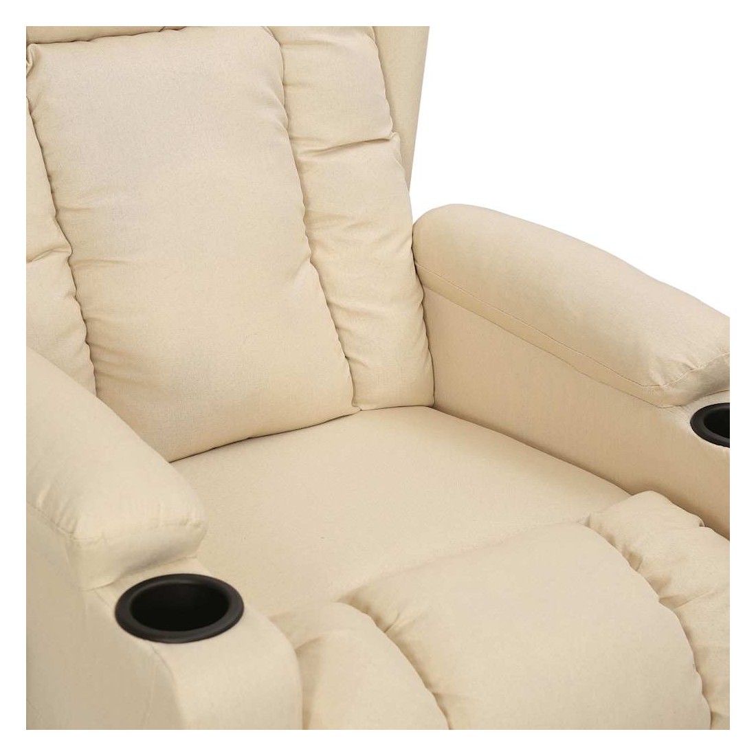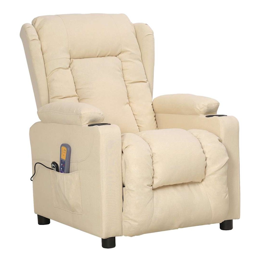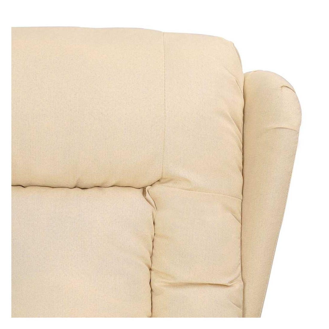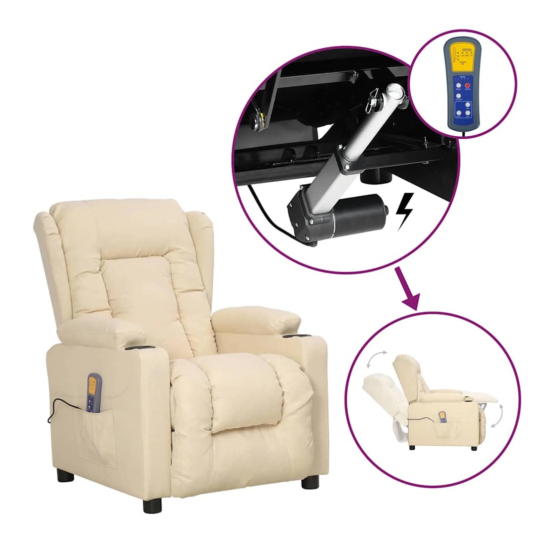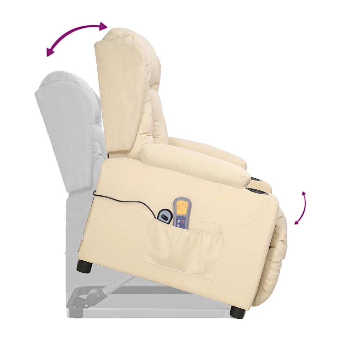 Asseyez-vous et détendez-vous dans ce fauteuil de massage très confortable ! Fonction d'inclinaison manuelle : le fauteuil inclinable est spécialement conçu avec 3 positions d'inclinaison afin que vous puissiez régler manuellement le dossier et le repose-pieds selon votre confort.Fonction de levage électrique : ce fauteuil inclinable pour personnes âgées est équipé d'un moteur électrique pour la fonction de levage. Grâce à la fonction qui pousse toute la chaise vers le haut, vous pouvez facilement vous tenir debout sans stresser votre dos et vos genoux grâce à la commande manuelle à 2 boutons.Fonction de vibration : les 6 points de massage proposés te permettent de bénéficier d'un massage mieux ciblé. De plus, la commande manuelle incluse te permet de choisir différents programmes de massage. La fonction de massage est alimentée par le connecteur USB, mais la source d'alimentation USB 5 V certifiée n'est pas incluse.Expérience d'assise confortable : le siège, le dossier et les larges accoudoirs rembourrés épais recouverts de tissu procurent une sensation confortable et chaleureuse, vous permettant de vous sentir enveloppé lorsque vous êtes assis. Le tissu présente un aspect simple et épuré, et est respirant et durable.Cadre solide et stable : le cadre en bois et en métal offre une structure solide et une grande stabilité. Ce fauteuil inclinable est confortable et durable.