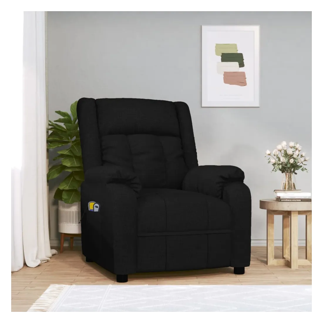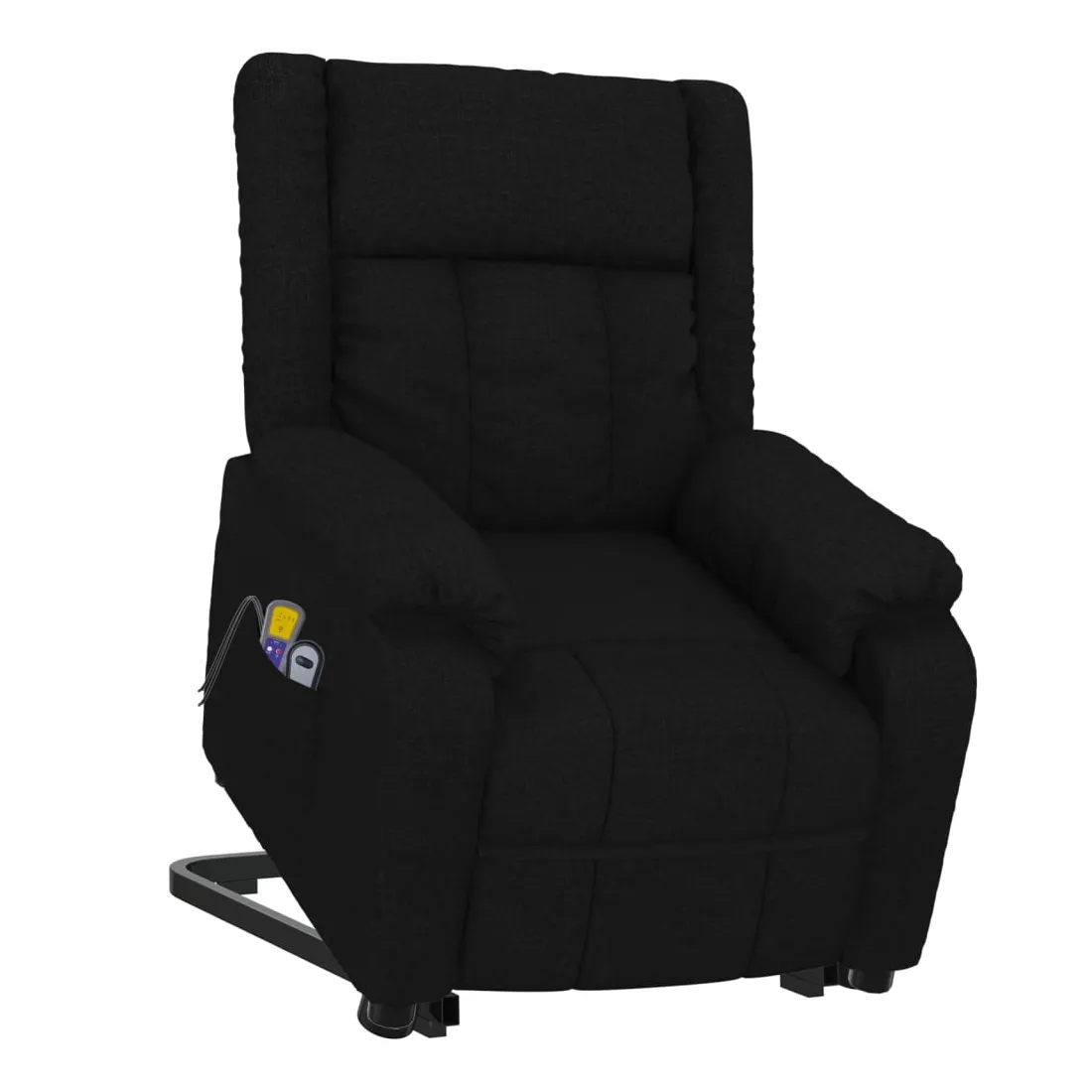 Asseyez-vous et détendez-vous dans ce fauteuil de massage très confortable ! Fonction d'inclinaison manuelle : le fauteuil inclinable est spécialement conçu avec 3 positions d'inclinaison afin que vous puissiez régler manuellement le dossier et le repose-pieds selon votre confort.Fonction de levage électrique : ce fauteuil inclinable pour personnes âgées est équipé d'un moteur électrique pour la fonction de levage. Grâce à la fonction qui pousse toute la chaise vers le haut, vous pouvez facilement vous tenir debout sans stresser votre dos et vos genoux grâce à la commande manuelle à 2 boutons.Fonction de vibration : les 6 points de massage vous permettent de faire l'expérience d'un massage mieux ciblé. De plus, la télécommande incluse vous permet de choisir différents programmes de massage. La fonction de massage est alimentée par le connecteur USB, mais la source d'alimentation USB 5V certifiée n'est pas incluse.Expérience d'assise confortable : le siège, le dossier et les larges accoudoirs rembourrés épais recouverts de tissu procurent une sensation confortable et chaleureuse, vous permettant de vous sentir enveloppé lorsque vous êtes assis. Le tissu présente un aspect simple et épuré, et est respirant et durable.Cadre solide et stable : le cadre en bois et en métal offre une structure solide et une grande stabilité. Ce fauteuil inclinable est confortable et durable.