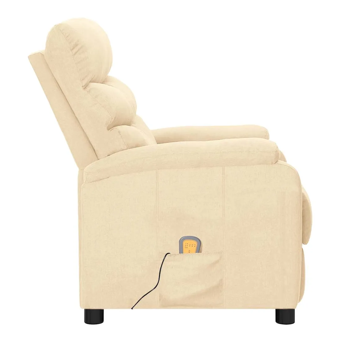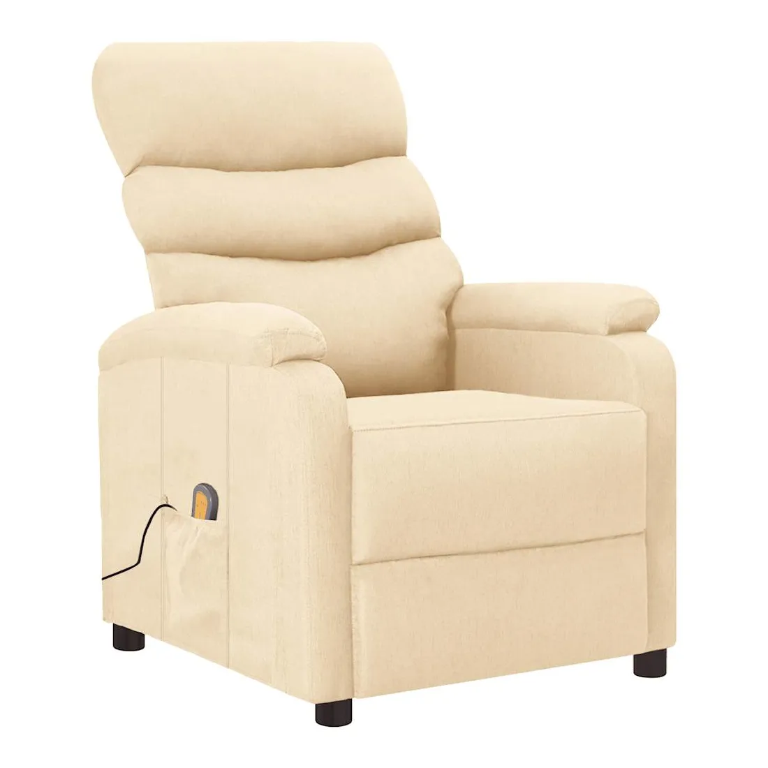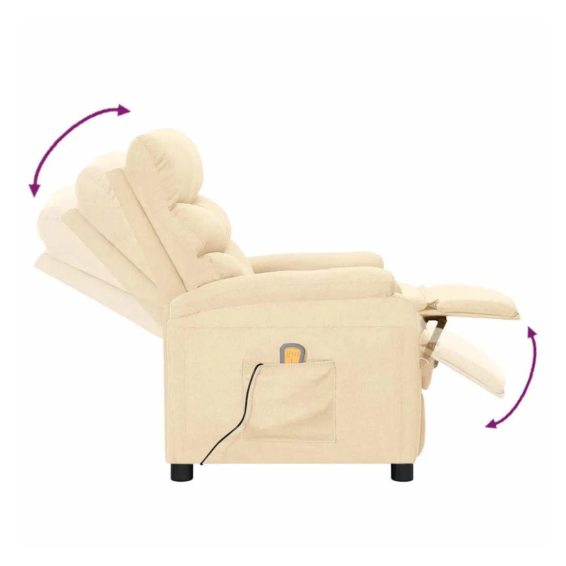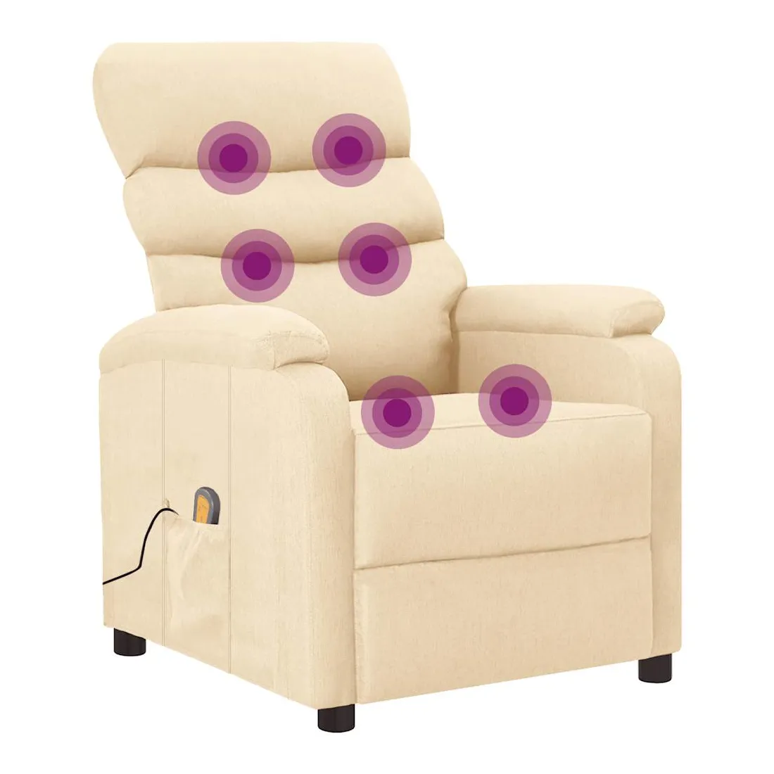 Asseyez-vous et détendez-vous dans ce fauteuil de massage très confortable ! Fonction d'inclinaison manuelle : le fauteuil inclinable est spécialement conçu avec 3 positions d'inclinaison afin que vous puissiez régler manuellement le dossier et le repose-pieds selon votre confort.Fonction de vibration : les 6 points de massage vous permettent de faire l'expérience d'un massage mieux ciblé. De plus, la télécommande incluse vous permet de choisir différents programmes de massage. La fonction de massage est alimentée par le connecteur USB, mais la source d'alimentation USB 5V certifiée n'est pas incluse.Expérience d'assise confortable : le siège, le dossier et les larges accoudoirs rembourrés épais recouverts de tissu procurent une sensation confortable et chaleureuse, vous permettant de vous sentir enveloppé lorsque vous êtes assis. Le tissu présente un aspect simple et épuré, et est respirant et durable.Cadre solide et stable : le cadre en bois et en métal offre une structure solide et une grande stabilité. Ce fauteuil inclinable est confortable et durable.