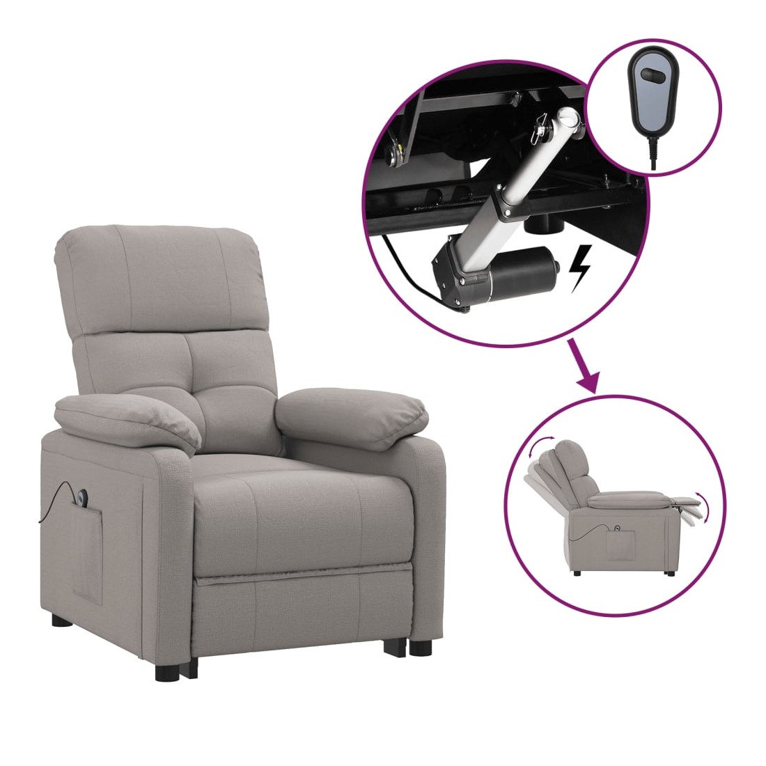 Asseyez-vous et détendez-vous dans ce fauteuil inclinable électrique très confortable ! Fonction d'inclinaison électrique : le fauteuil inclinable est équipé d'un moteur électrique pour la fonction d'inclinaison. Il offre 3 positions d'inclinaison et vous pouvez facilement régler le dossier et le repose-pied à l'aide de la commande manuelle à 2 boutons incluse, en fonction de votre confort.Expérience d'assise confortable : le siège, le dossier et les larges accoudoirs rembourrés épais recouverts de tissu procurent une sensation confortable et chaleureuse, vous permettant de vous sentir enveloppé lorsque vous êtes assis. Le tissu présente un aspect simple et épuré, et est respirant et durable.Cadre solide et stable : le cadre en bois et en métal offre une structure solide et une grande stabilité. Ce fauteuil inclinable est confortable et durable.