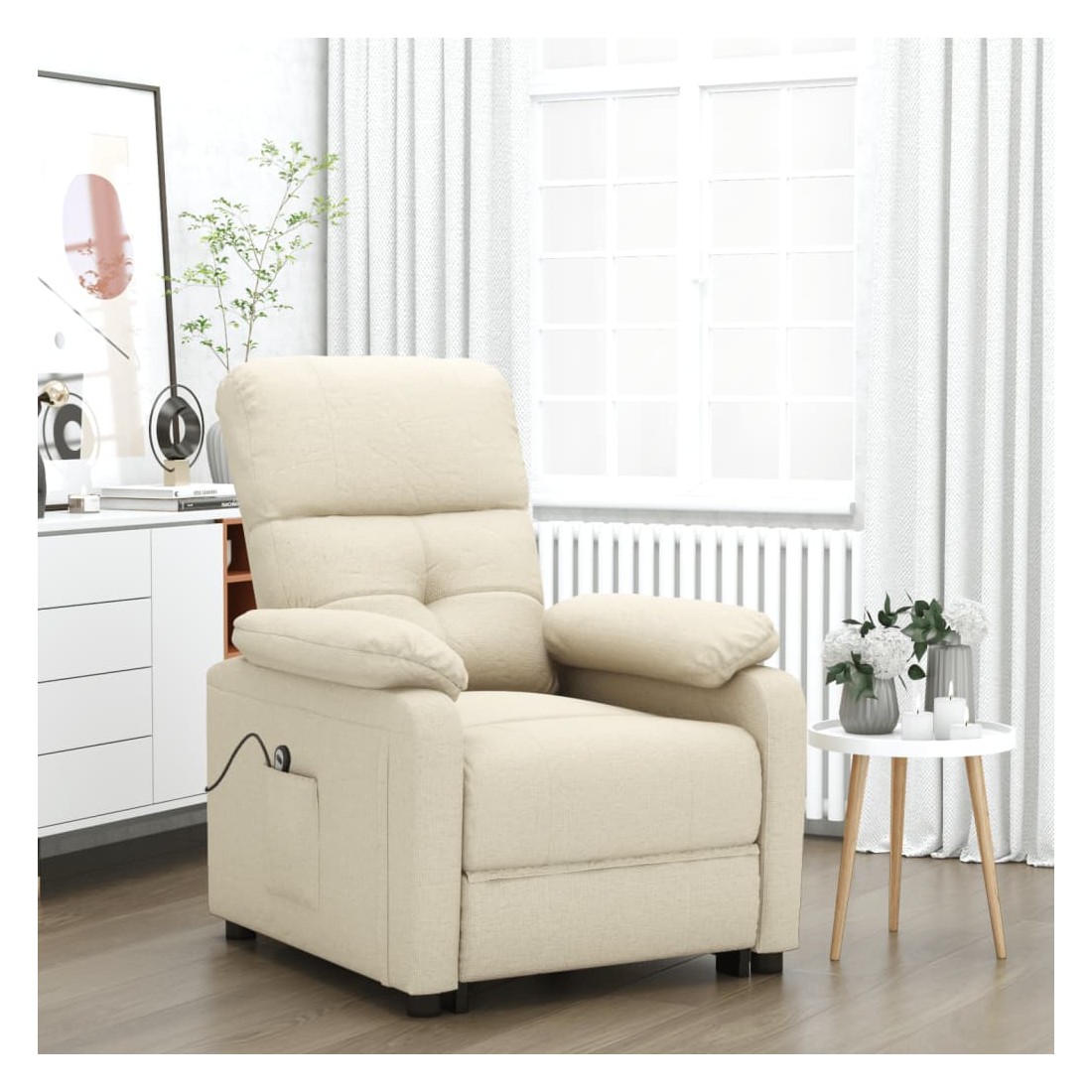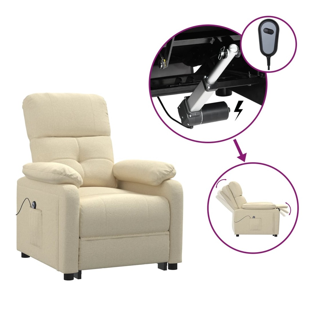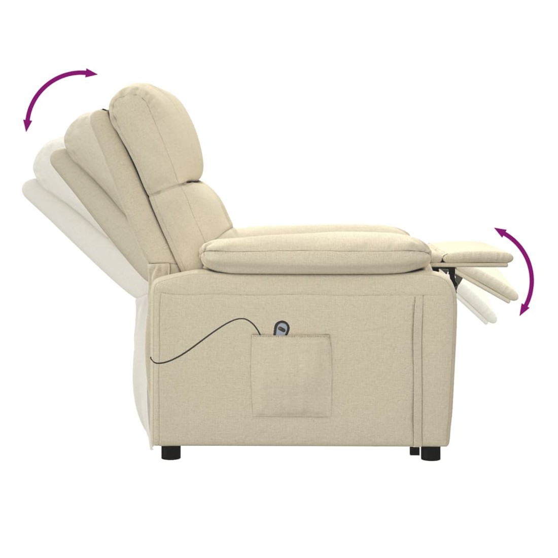 Asseyez-vous et détendez-vous dans ce fauteuil inclinable électrique très confortable ! Fonction d'inclinaison électrique : le fauteuil inclinable est équipé d'un moteur électrique pour la fonction d'inclinaison. Il offre 3 positions d'inclinaison et vous pouvez facilement régler le dossier et le repose-pied à l'aide de la commande manuelle à 2 boutons incluse, en fonction de votre confort.Expérience d'assise confortable : le siège, le dossier et les larges accoudoirs rembourrés épais recouverts de tissu procurent une sensation confortable et chaleureuse, vous permettant de vous sentir enveloppé lorsque vous êtes assis. Le tissu présente un aspect simple et épuré, et est respirant et durable.Cadre solide et stable : le cadre en bois et en métal offre une structure solide et une grande stabilité. Ce fauteuil inclinable est confortable et durable.