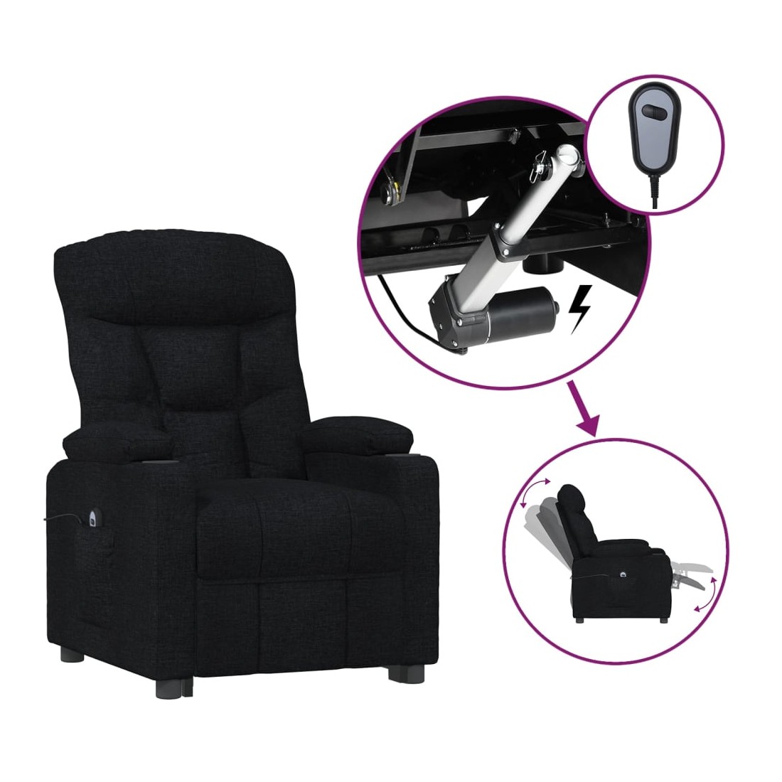 Asseyez-vous et détendez-vous dans ce fauteuil inclinable électrique très confortable ! Fonction d'inclinaison électrique : le fauteuil inclinable est équipé d'un moteur électrique pour la fonction d'inclinaison. Il offre 3 positions d'inclinaison et vous pouvez facilement régler le dossier et le repose-pied à l'aide de la commande manuelle à 2 boutons incluse, en fonction de votre confort.Expérience d'assise confortable : le siège, le dossier et les larges accoudoirs rembourrés épais recouverts de tissu procurent une sensation confortable et chaleureuse, vous permettant de vous sentir enveloppé lorsque vous êtes assis. Le tissu présente un aspect simple et épuré, et est respirant et durable.Cadre solide et stable : le cadre en bois et en métal offre une structure solide et une grande stabilité. Ce fauteuil inclinable est confortable et durable.