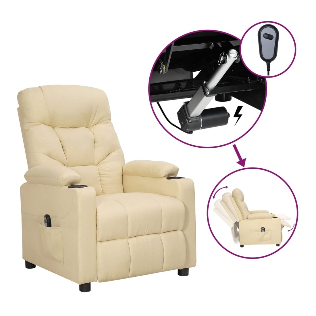 Fauteuil inclinable électrique Crème Tissu