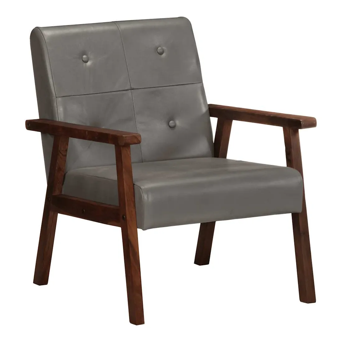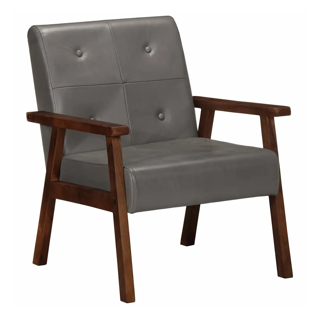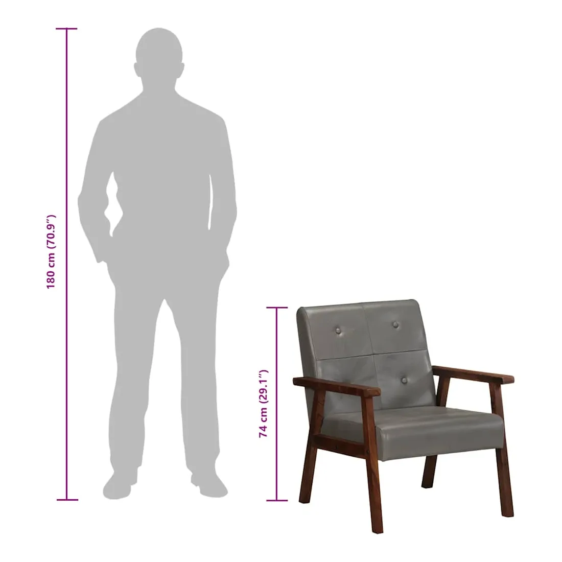 Notre fauteuil en cuir véritable sera un excellent complément à la décoration de votre salon, bureau ou chambre à coucher. Le fauteuil est fait de cuir véritable facile à nettoyer et décoré de boutons, ce qui ajoute une touche de luxe à tout intérieur. Son siège et son dossier bien rembourrés assurent un confort d'assise optimal. De plus, le cadre en bois d'acacia solide améliore la stabilité et la durabilité du fauteuil. C'est l'endroit idéal pour regarder un film, lire un livre ou tout simplement vous détendre ! Ce fauteuil est facile à assembler.