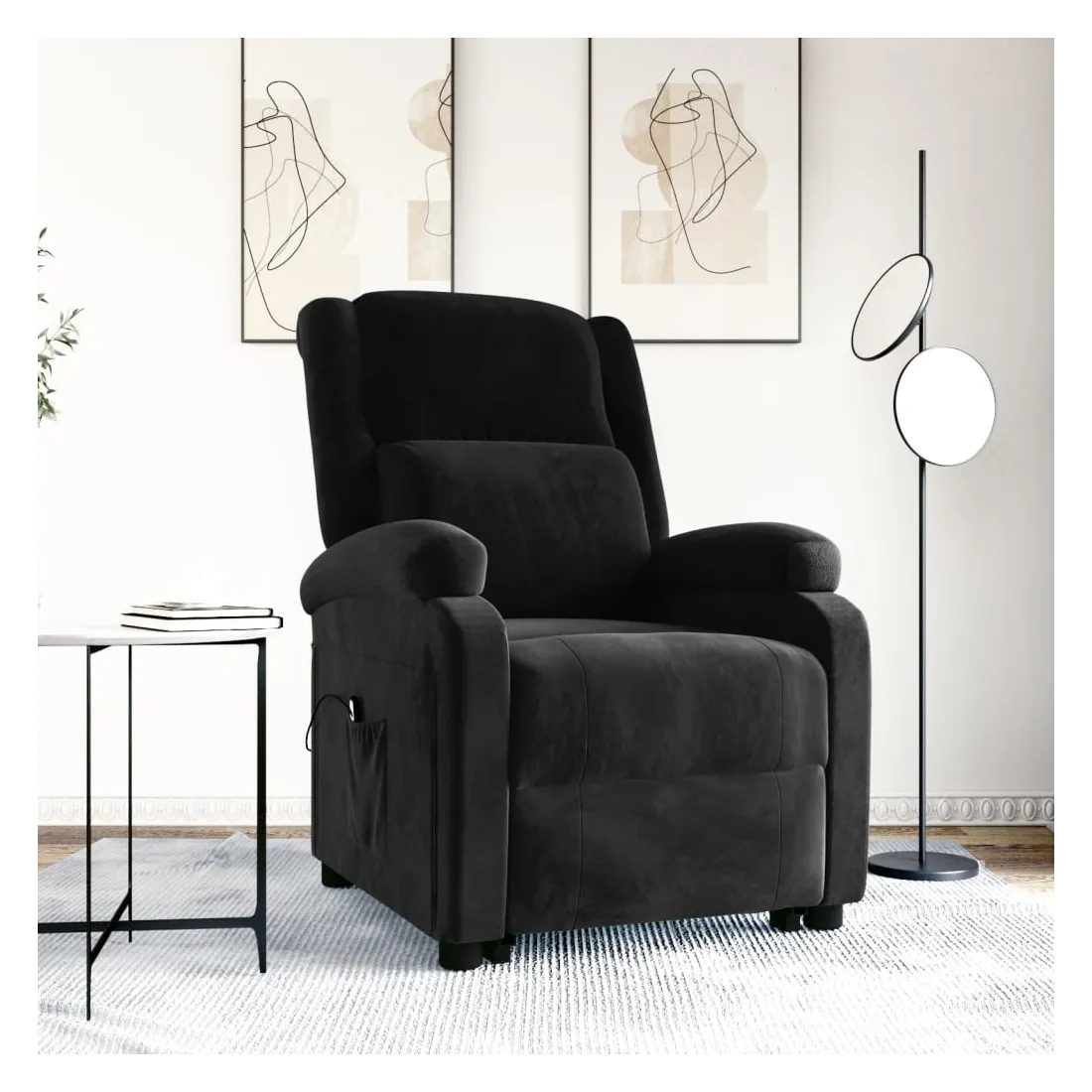 Asseyez-vous et détendez-vous dans ce fauteuil très confortable ! Fonction d'inclinaison manuelle : le fauteuil inclinable est spécialement conçu avec 3 positions d'inclinaison afin que vous puissiez régler manuellement le dossier et le repose-pieds selon votre confort.Fonction de levage électrique : ce fauteuil inclinable pour personnes âgées est équipé d'un moteur électrique pour la fonction de levage. Grâce à la fonction qui pousse toute la chaise vers le haut, vous pouvez facilement vous tenir debout sans stresser votre dos et vos genoux grâce à la commande manuelle à 2 boutons.Expérience d'assise confortable : le siège, le dossier et les larges accoudoirs rembourrés épais recouverts de velours procurent une sensation confortable et chaleureuse, vous faisant vous sentir enlacé lorsque vous êtes assis. Le velours est un tissu doux et confortable qui est agréable sur la peau.Cadre solide et stable : le cadre en bois et en métal offre une structure solide et une grande stabilité. Ce fauteuil inclinable est confortable et durable.